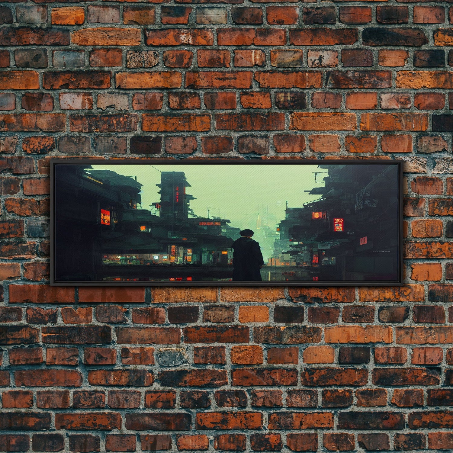 80s style Cyberpunk Japanese City, Retro Punk Tokyo, Framed Canvas Print, Framed Wall Art, Large Panoramic Wall Decor