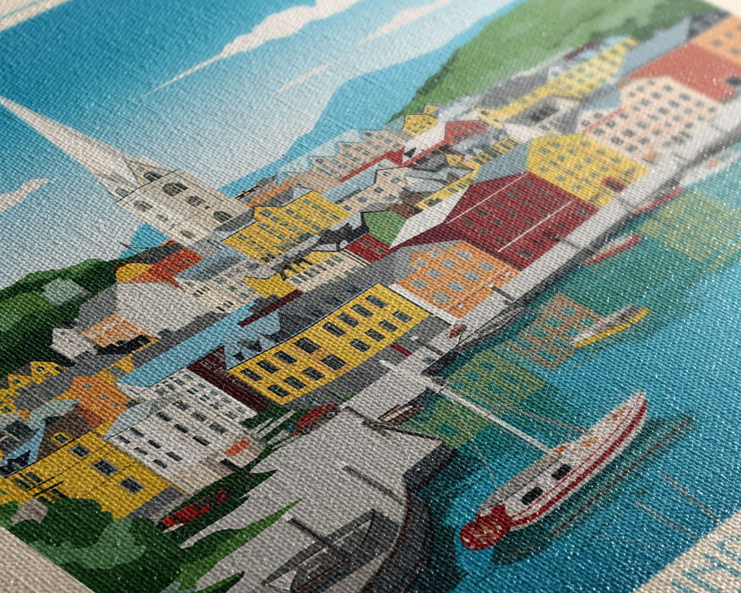 Ålesund Norway Travel Poster Framed Canvas Print, Midcentury Modern Art, Pop Art Wall Decor, Living Room Art, Scenic Wall Art