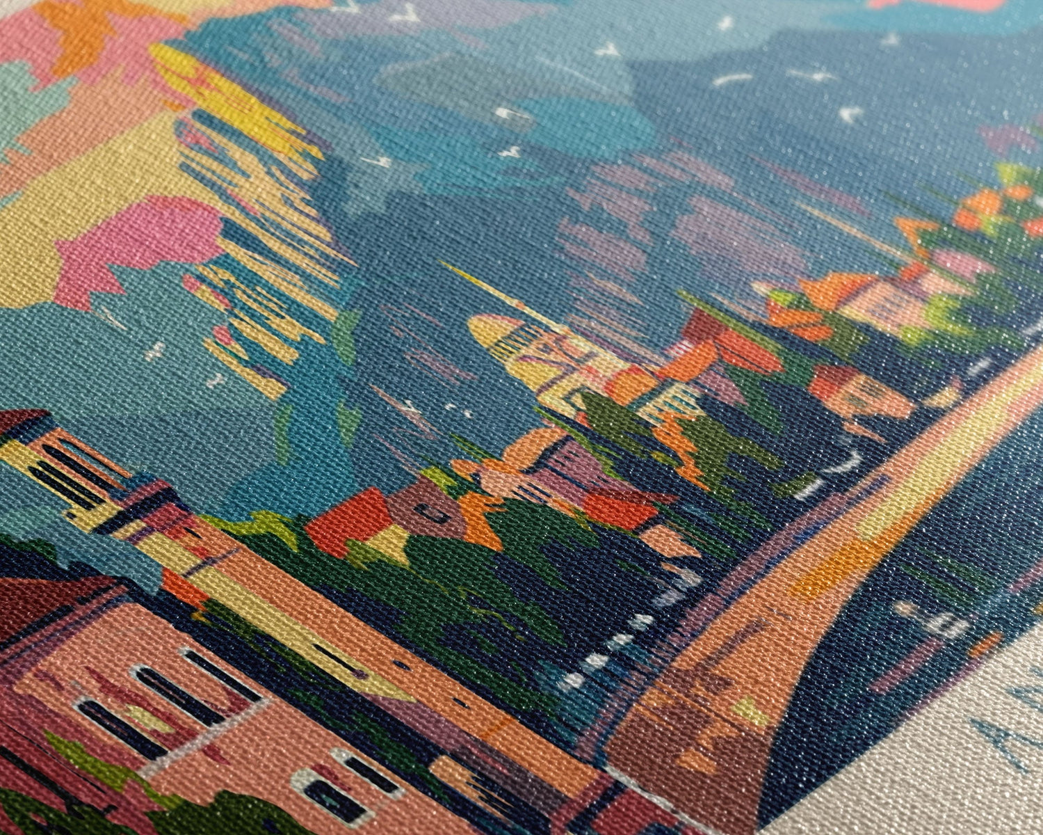 Antalya Turkey Panoramic Travel Poster, Framed Canvas Print or Metal Wall Art, Travel Art, Home Decor, Panoramic Painting, Midcentury Art - 10x30 Inches / Gallery Wrap Canvas - Ready To Hang is backordered and will ship as soon as it is back in stock.