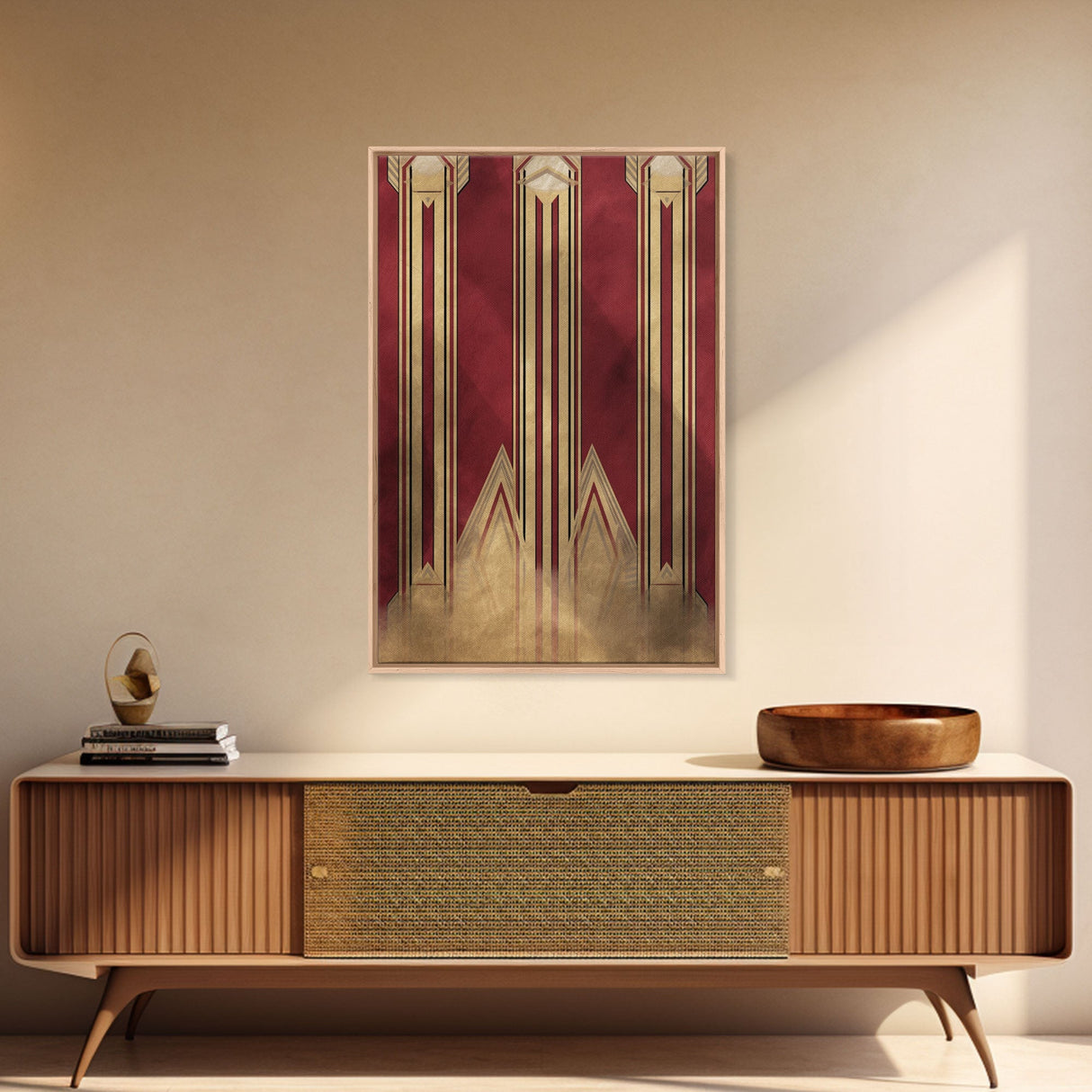 Art Deco Pattern Wall art - Framed Canvas Print - Art Deco - Abstract art - Gold & red art - Lines art - Living room art - Office decor