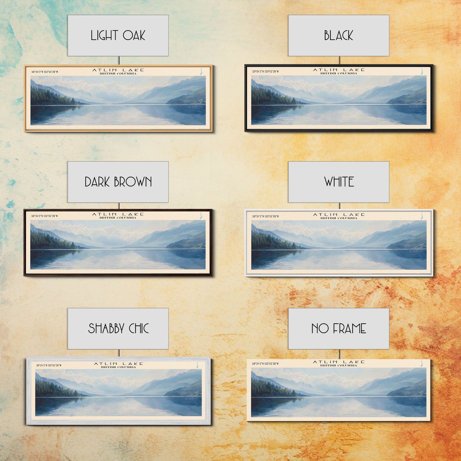 Atlin Lake Panoramic Framed Canvas Print, Lake House Decor, Minimalist Art, Travel Poster, Scenic View, Nature Wall Art