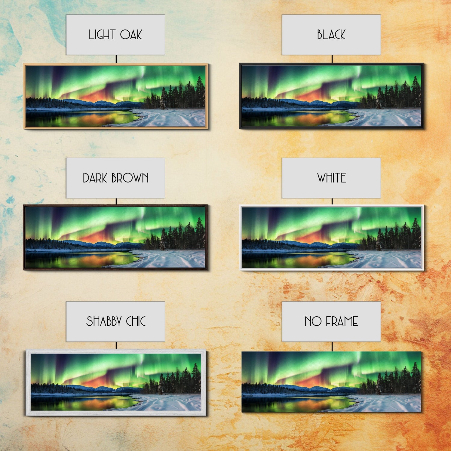 Aurora Borealis, Northern Lights Panoramic Framed Canvas Print, Beautiful Winter Wonderland Landscape Painting