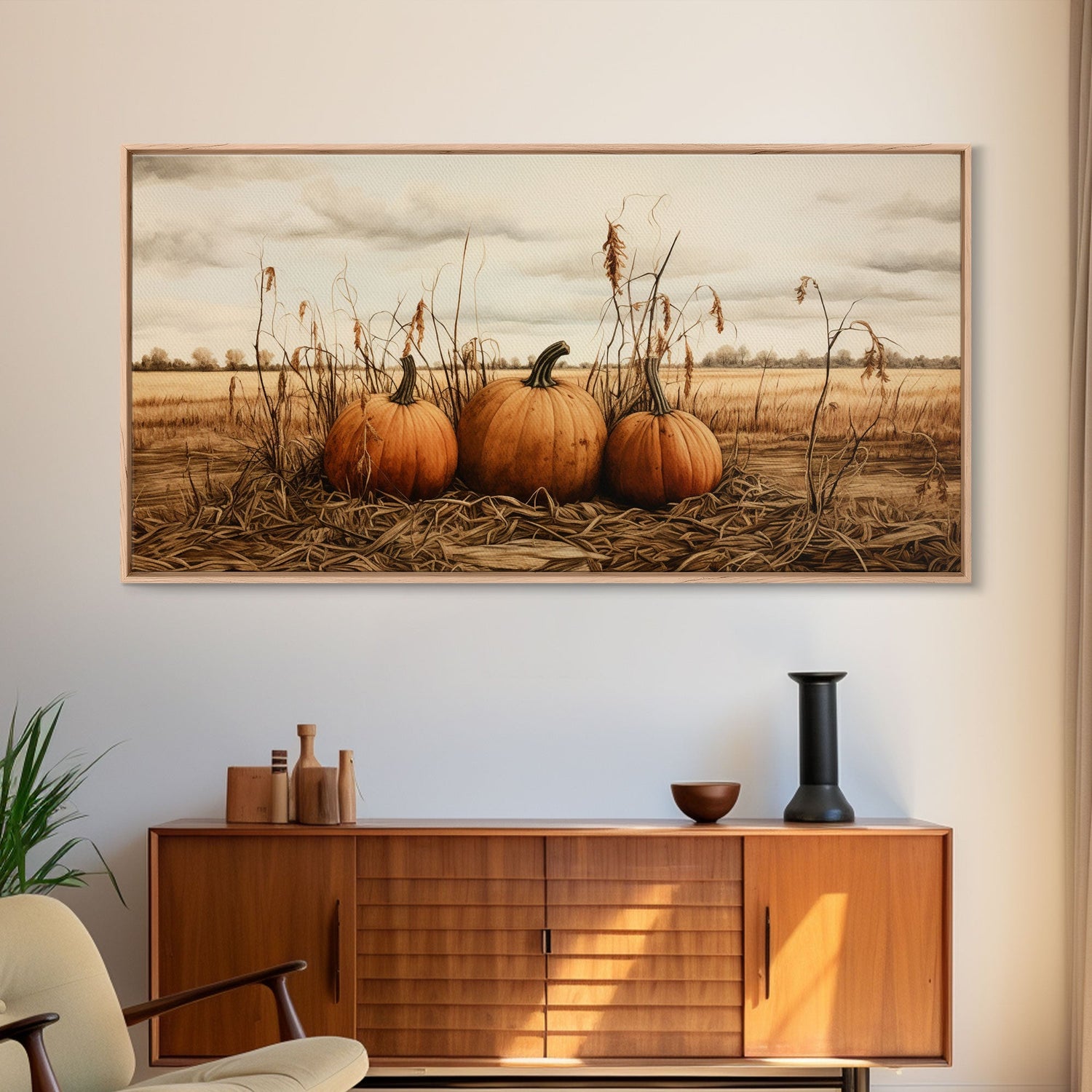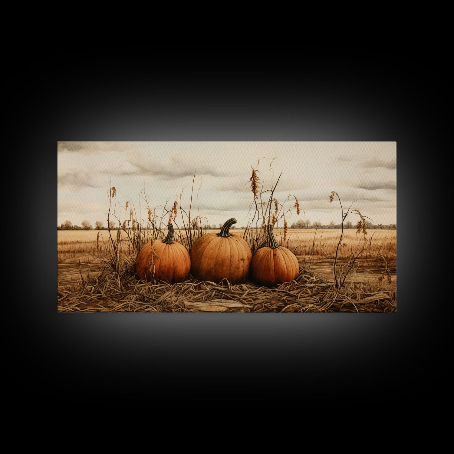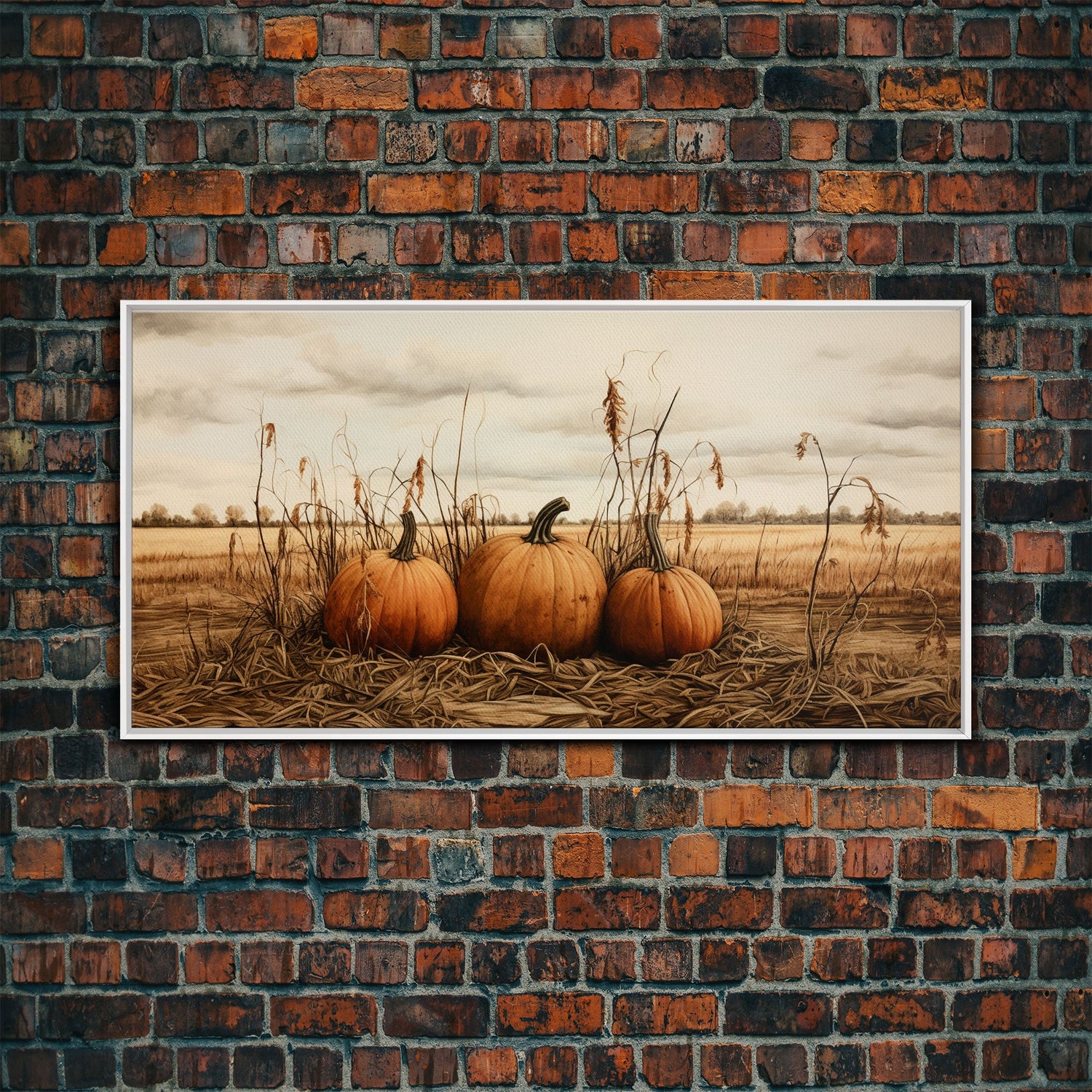 Autumn Wall Art, Pumpkin Decor, Farm Wall Art, Canvas Print, Wall Hanging, Panoramic Art, Farmhouse Wall Decor, Housewarming Gift, RV Decor