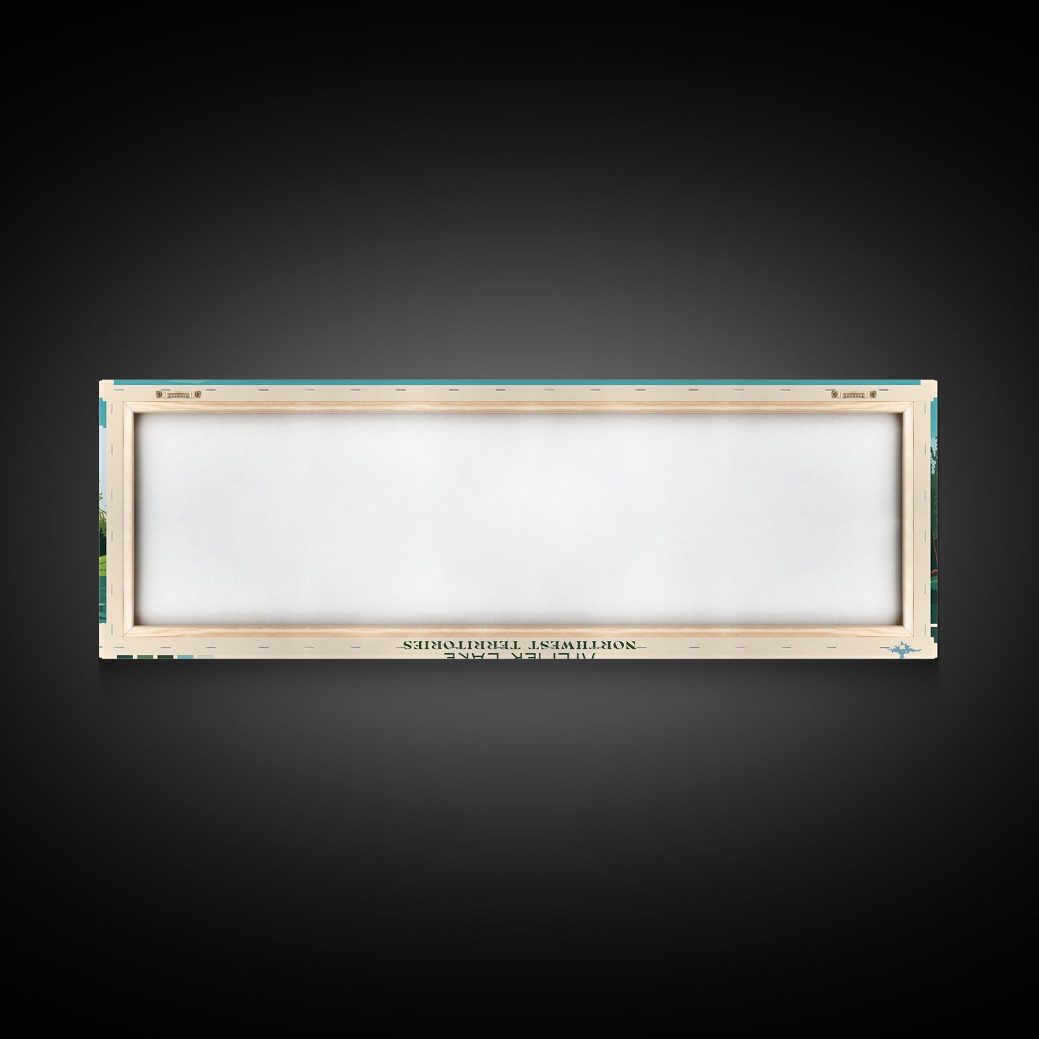 Aylmer Lake Northwest Territories Framed Canvas Print, Panoramic Travel Poster, Midcentury Modern Wall Art, Pop Art, Lake House Decor - 10x30 Inches / Gallery Wrap Canvas - Ready To Hang is backordered and will ship as soon as it is back in stock.