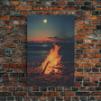 Beach Campfire Under A Full Moon, Photography Print, Framed Canvas Print, Beach House Decor, Coastal Decor, Beach Print, Beach Art - 8x12 Inches / No Frame - Stretched Canvas Only is backordered and will ship as soon as it is back in stock.