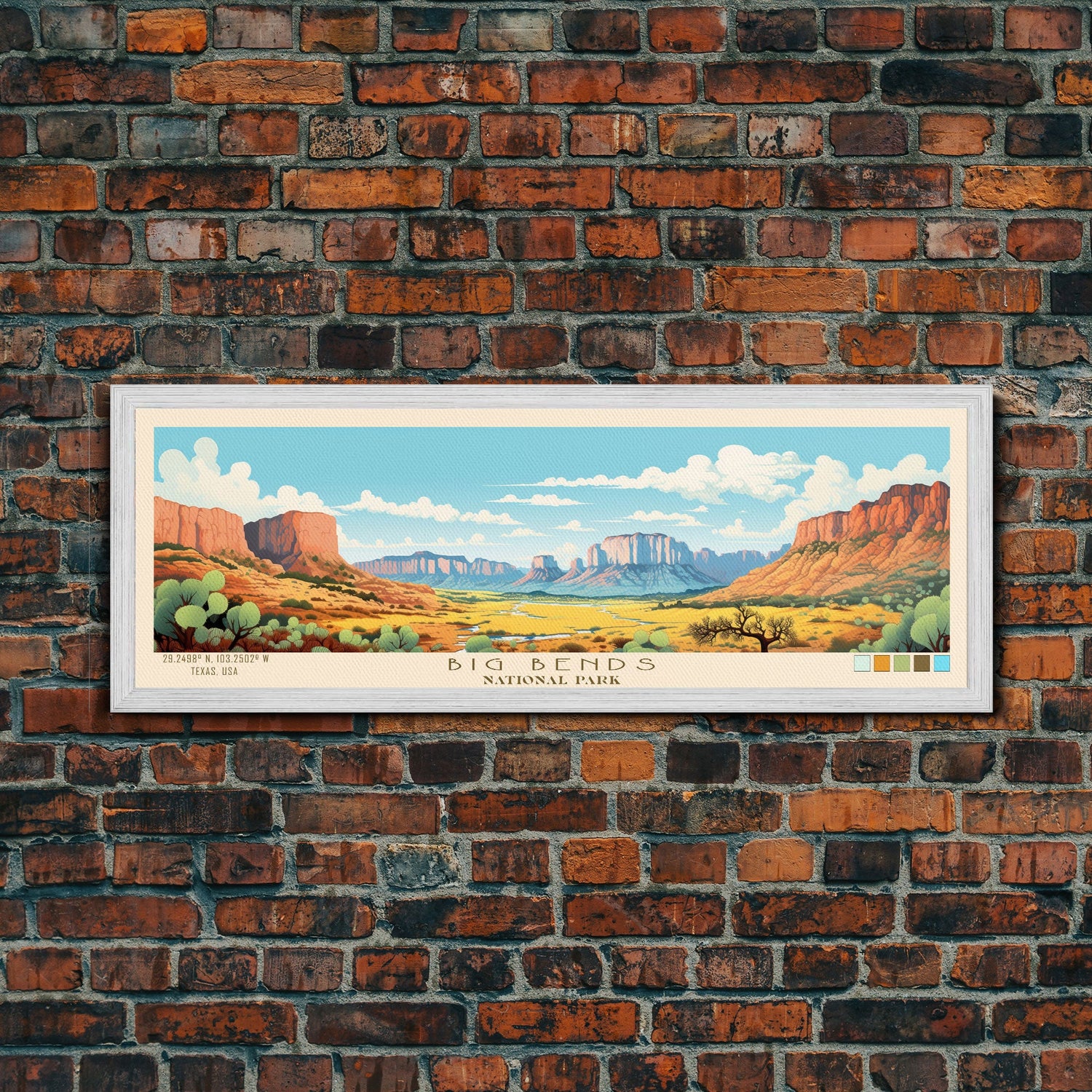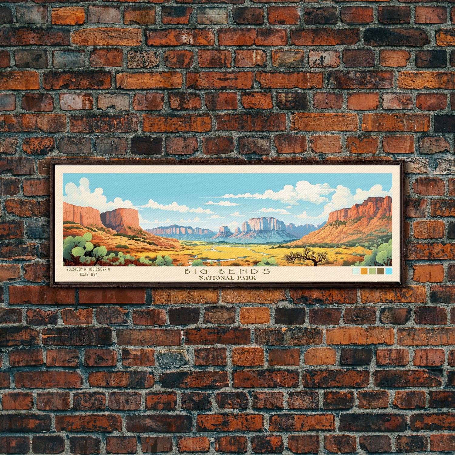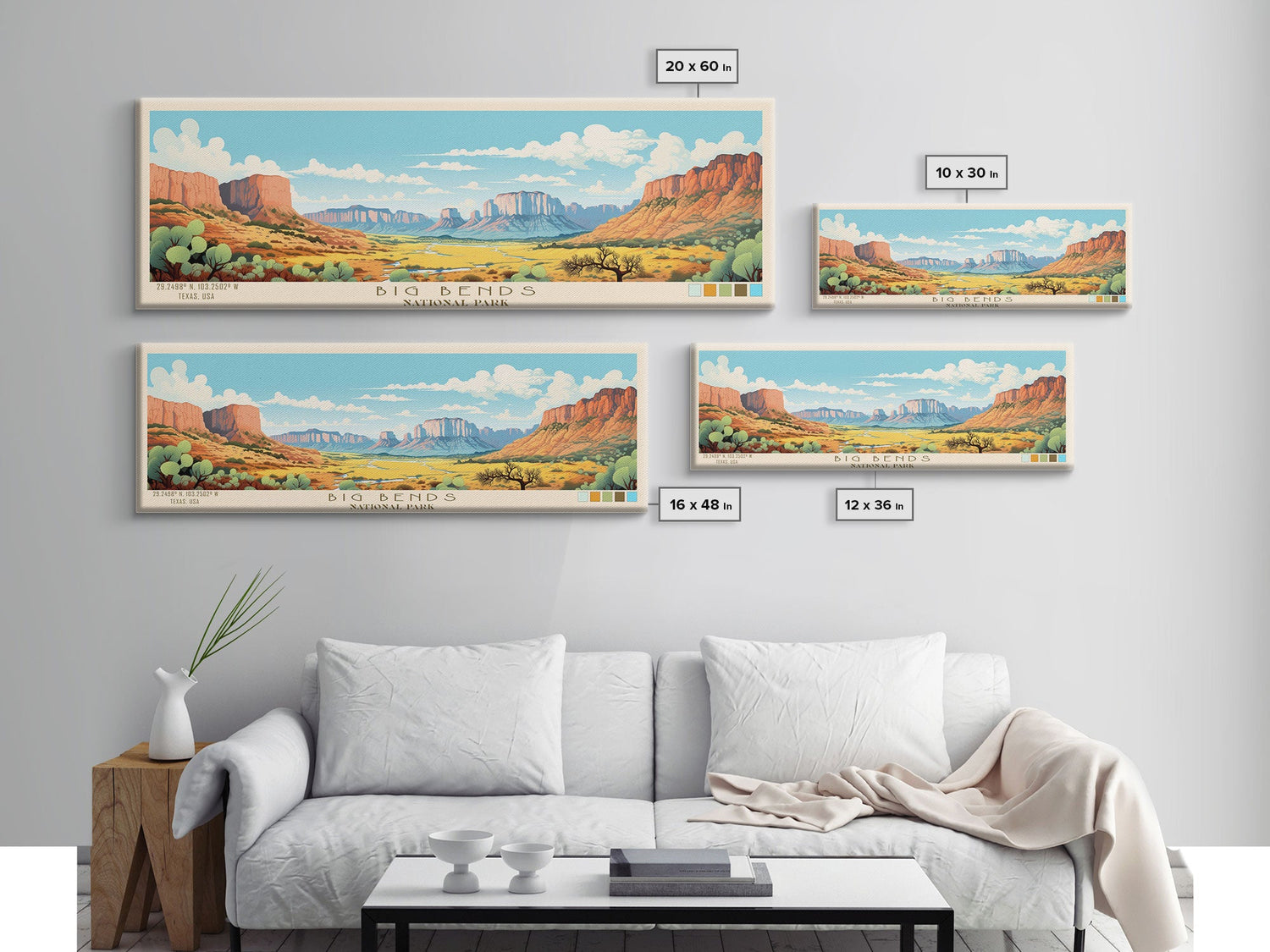 Big Bend National Park, Panoramic Texas Travel Art, National Park Print, Minimalist Travel Art, Midcentury Modern Style Landscape - 10x30 Inches / No Frame - Stretched Canvas Only is backordered and will ship as soon as it is back in stock.