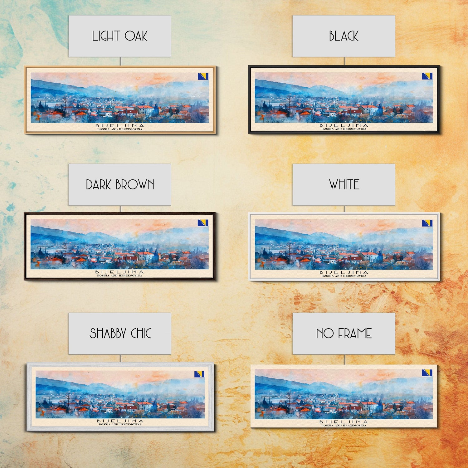 Bijeljina Bosnia Panoramic Travel Poster, Framed Canvas Print or Metal Wall Art, Travel Art, Home Decor, Panoramic Painting, Midcentury Art