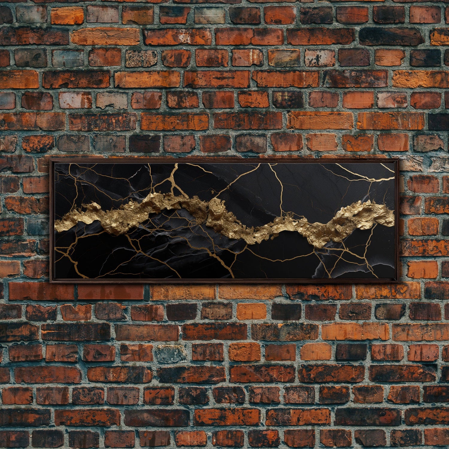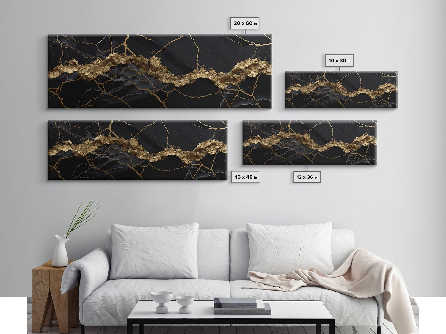 Black and Gold Marble Canvas Wall Art, Abstract Canvas Art, Panoramic Art, Large Wall Art, Marble Wall Decor, Large Canvas Art, Modern Art - 10x30 Inches / No Frame - Stretched Canvas Only is backordered and will ship as soon as it is back in stock.