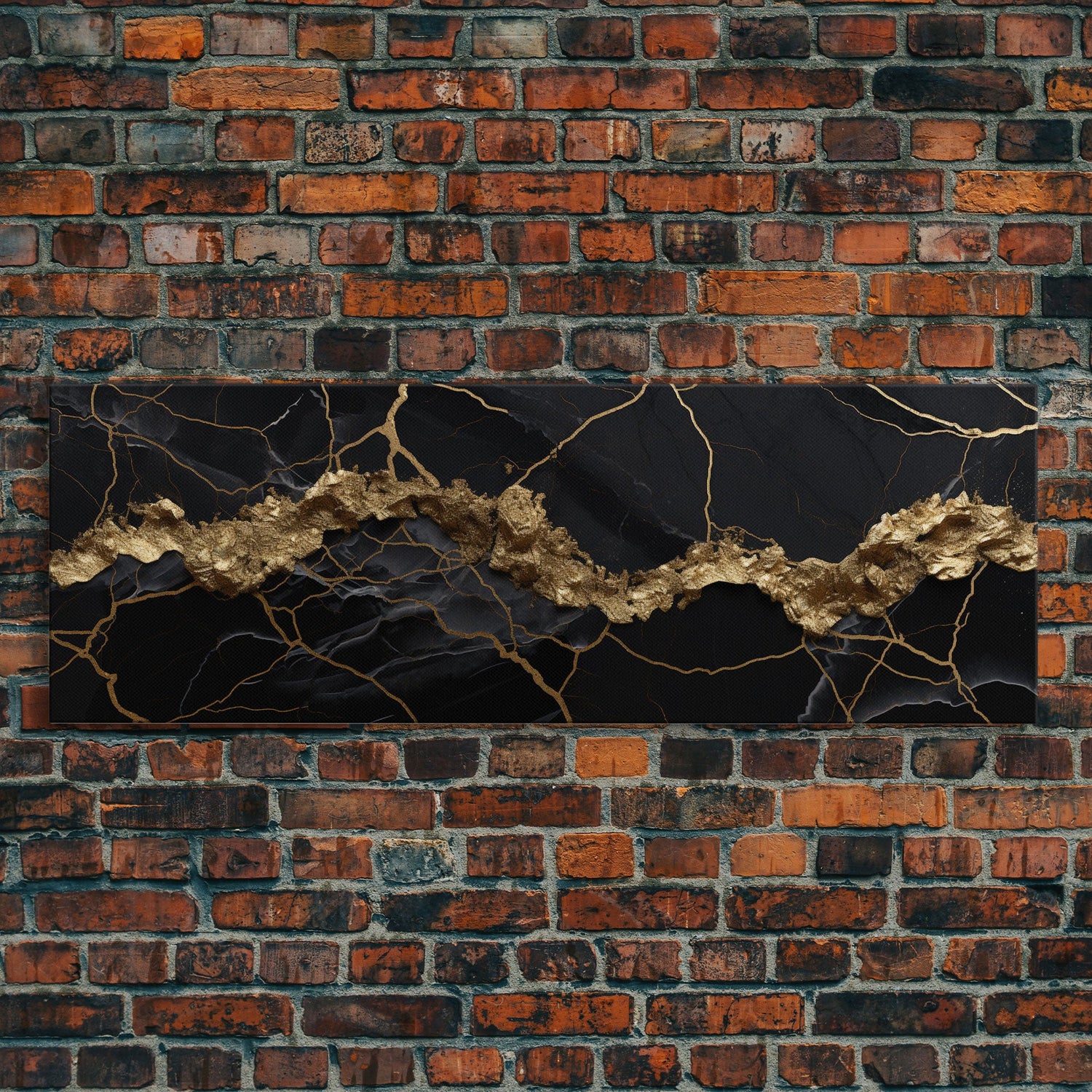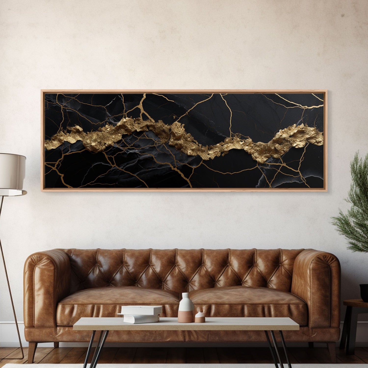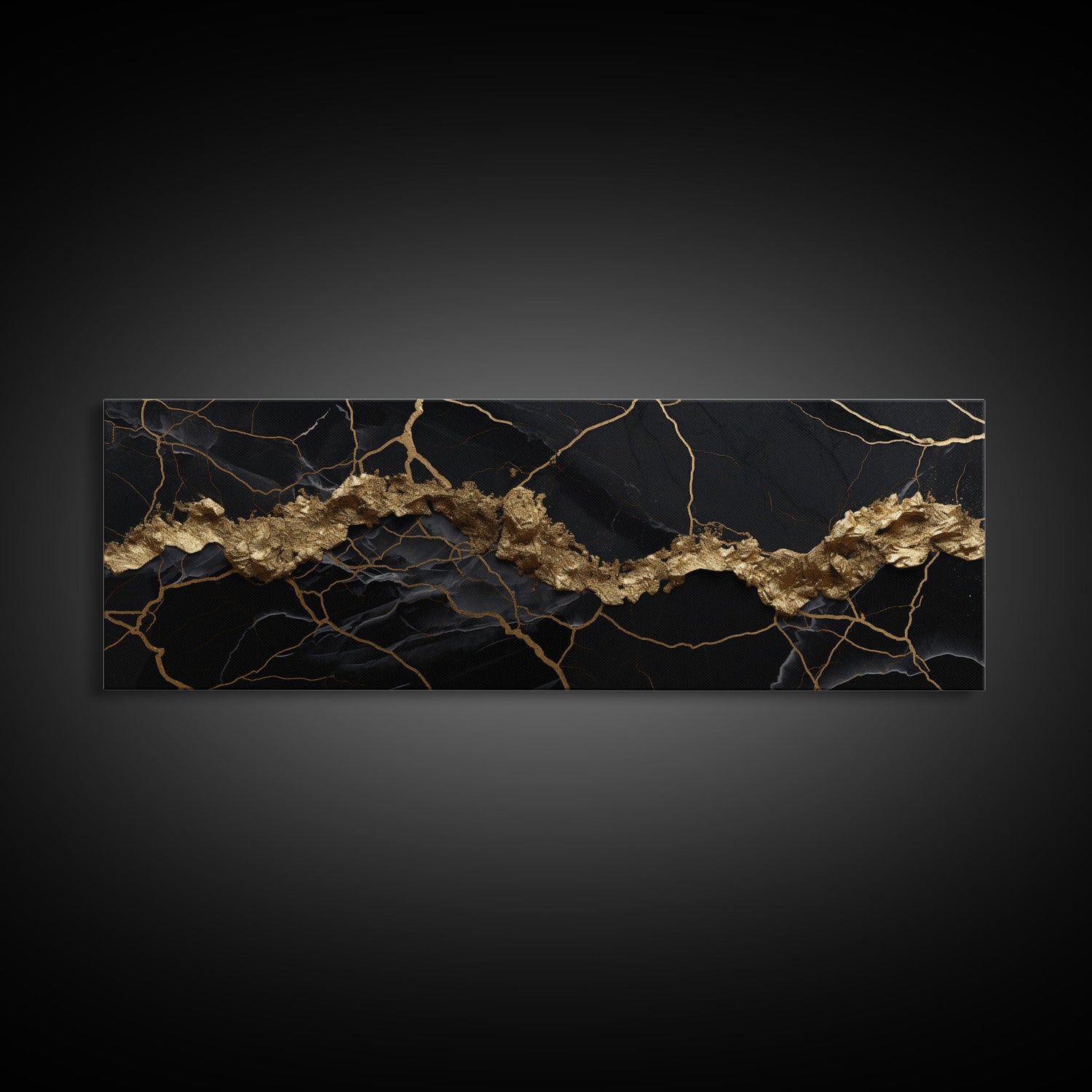 Black and Gold Marble Canvas Wall Art, Abstract Canvas Art, Panoramic Art, Large Wall Art, Marble Wall Decor, Large Canvas Art, Modern Art
