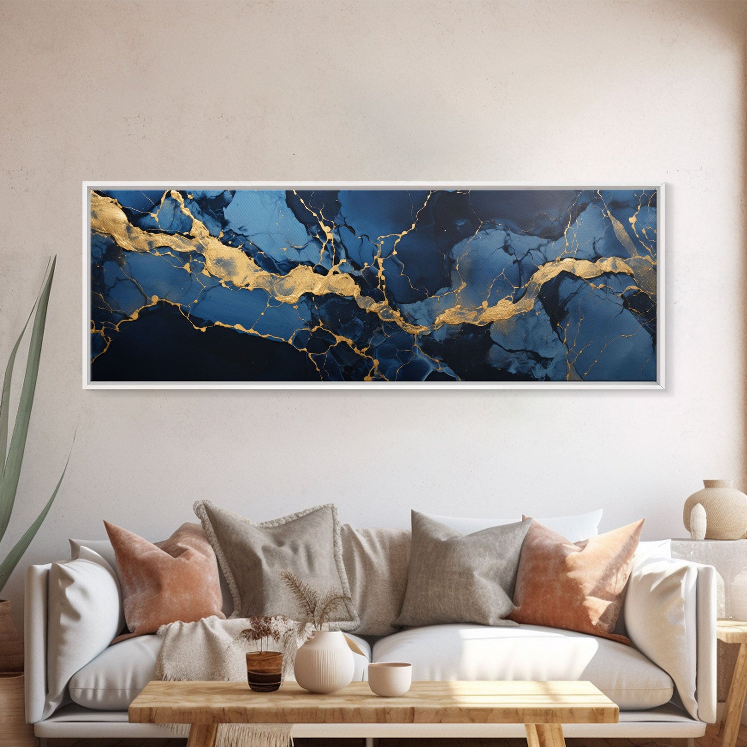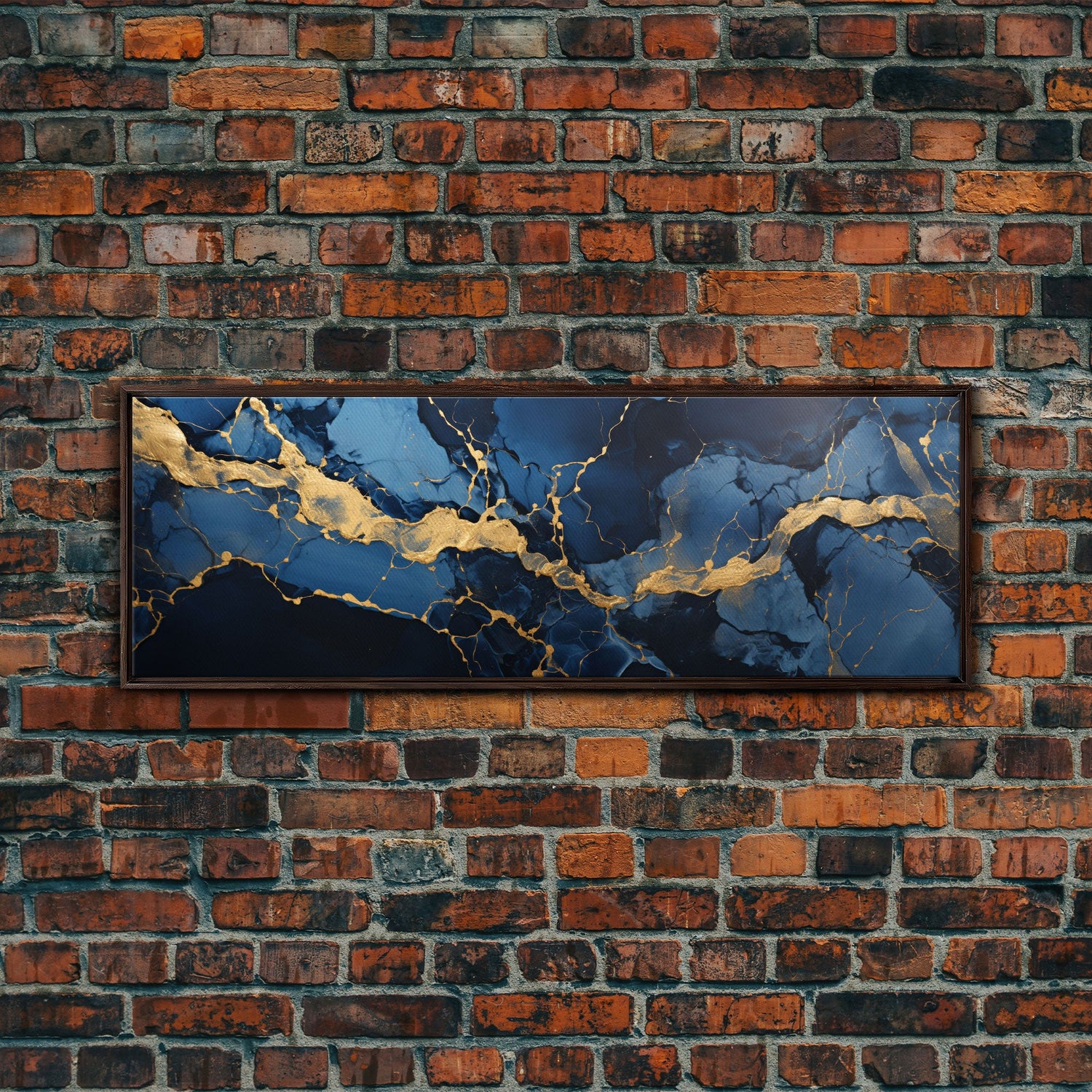Black, Blue and Gold Marble Canvas Wall Art, Abstract Canvas Art, Panoramic Art, Large Wall Art, Marble Wall Decor, Large Canvas Modern Art