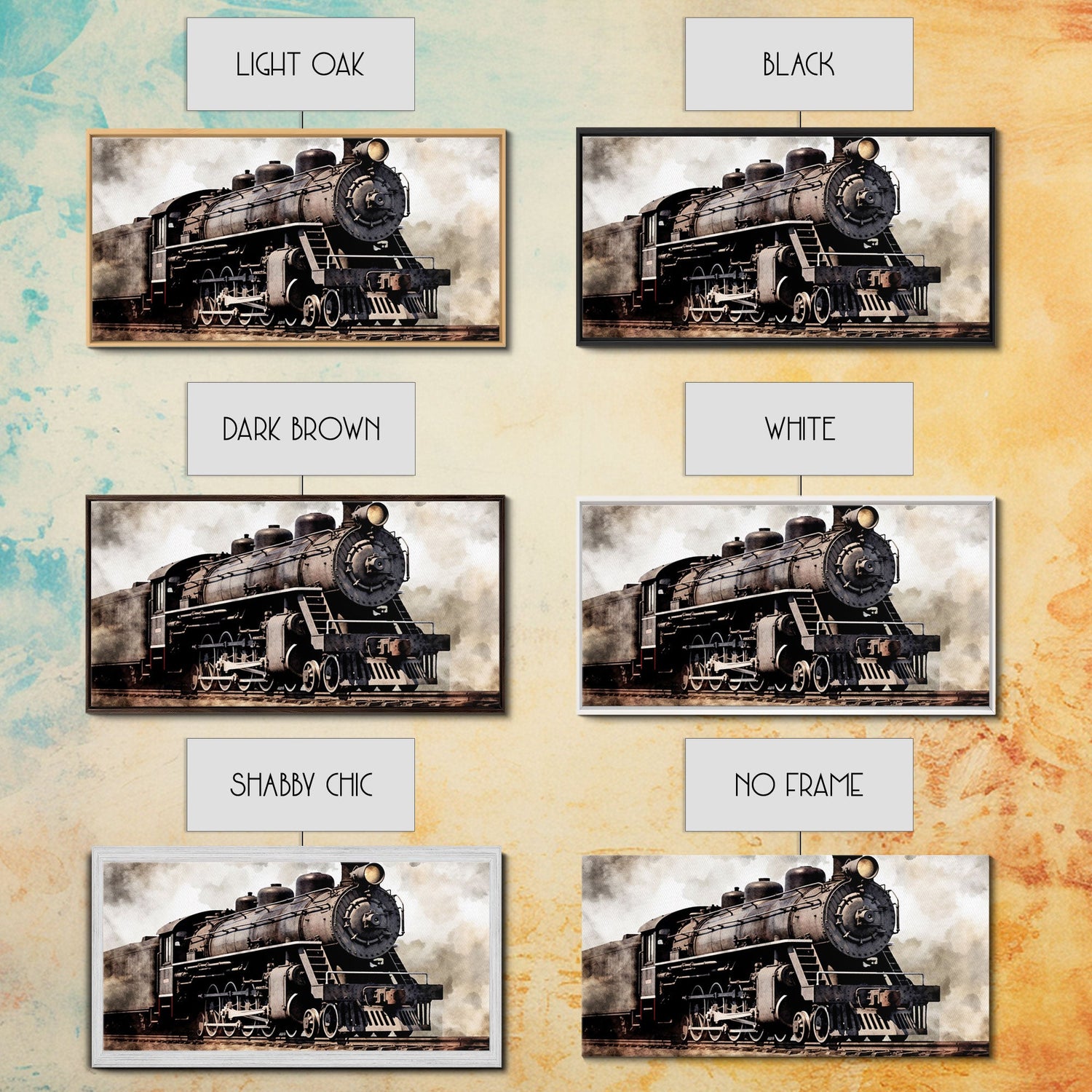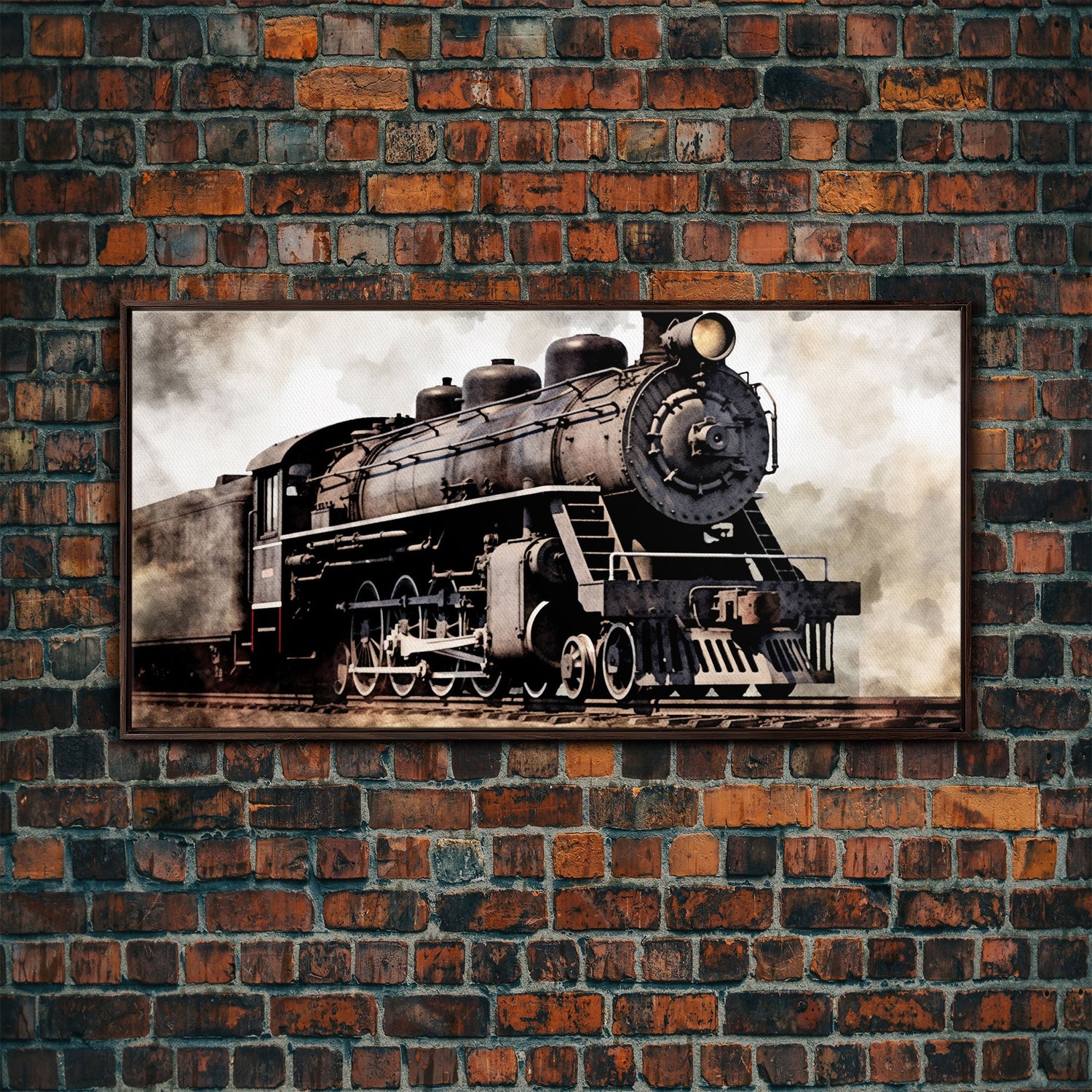 Black Steam Train Wall Art, Locomotive Wall Decor, Retro Train Wall Art, Panoramic Wall Decor, Canvas Print, Wall Art, Framed Canvas Art