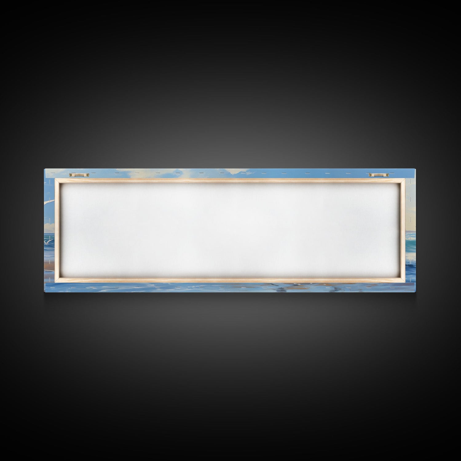 Blue Beach, Ocean Waves & Seagulls Panoramic Framed Canvas Print - Perfect for Living Room, Bedroom, Office Decor