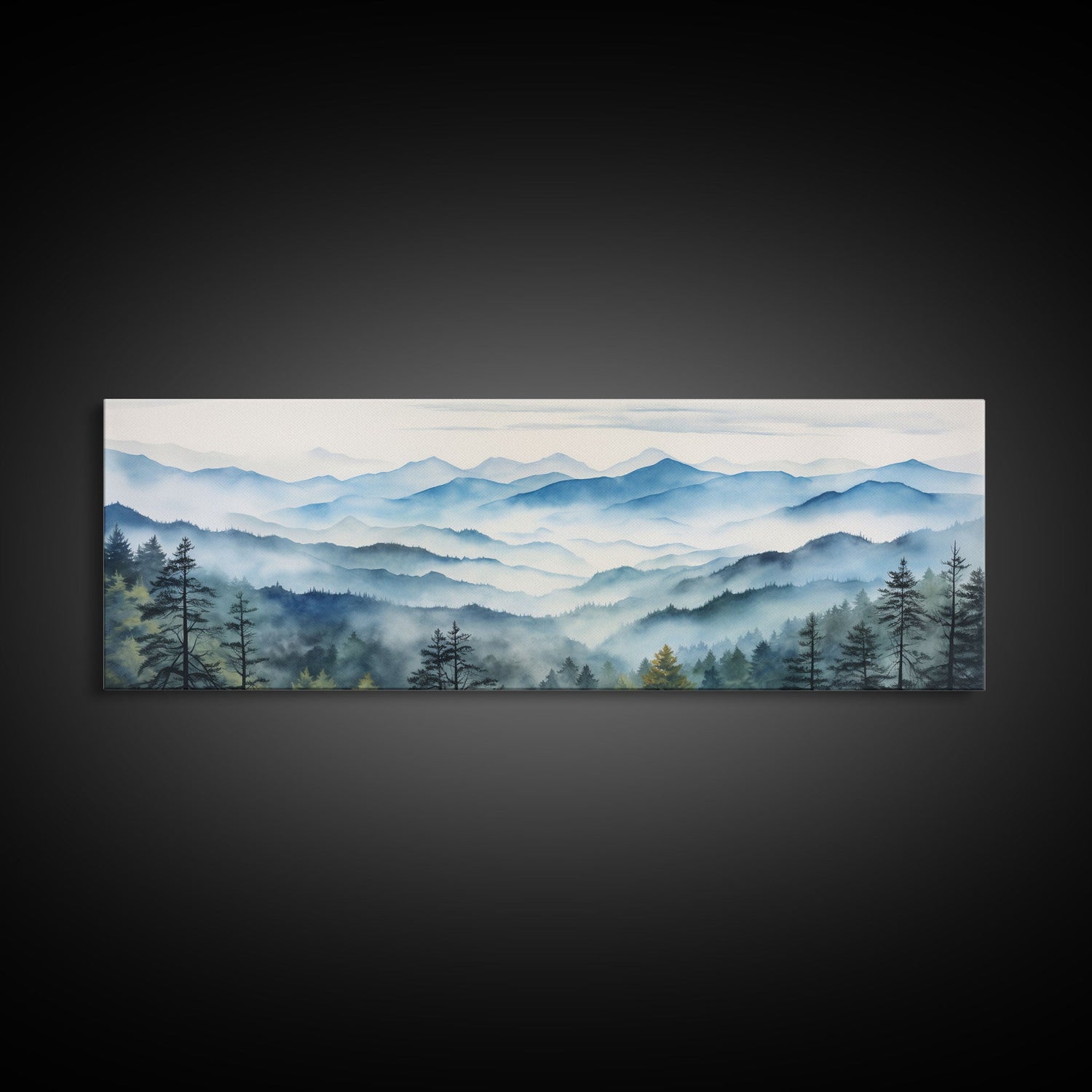 Blue Ridge Mountains National Park Panoramic Watercolor Painting Framed Canvas Print Large Wall Art - 10x30 Inches / No Frame - Stretched Canvas Only is backordered and will ship as soon as it is back in stock.
