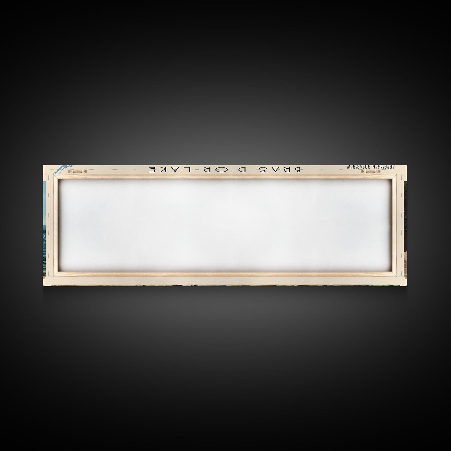 Bras d'Or Lake Framed Canvas Print, Panoramic Lake House Decor, Wall Art, Travel Poster, Rustic Lake Painting, Home Decor - 10x30 Inches / Gallery Wrap Canvas - Ready To Hang is backordered and will ship as soon as it is back in stock.