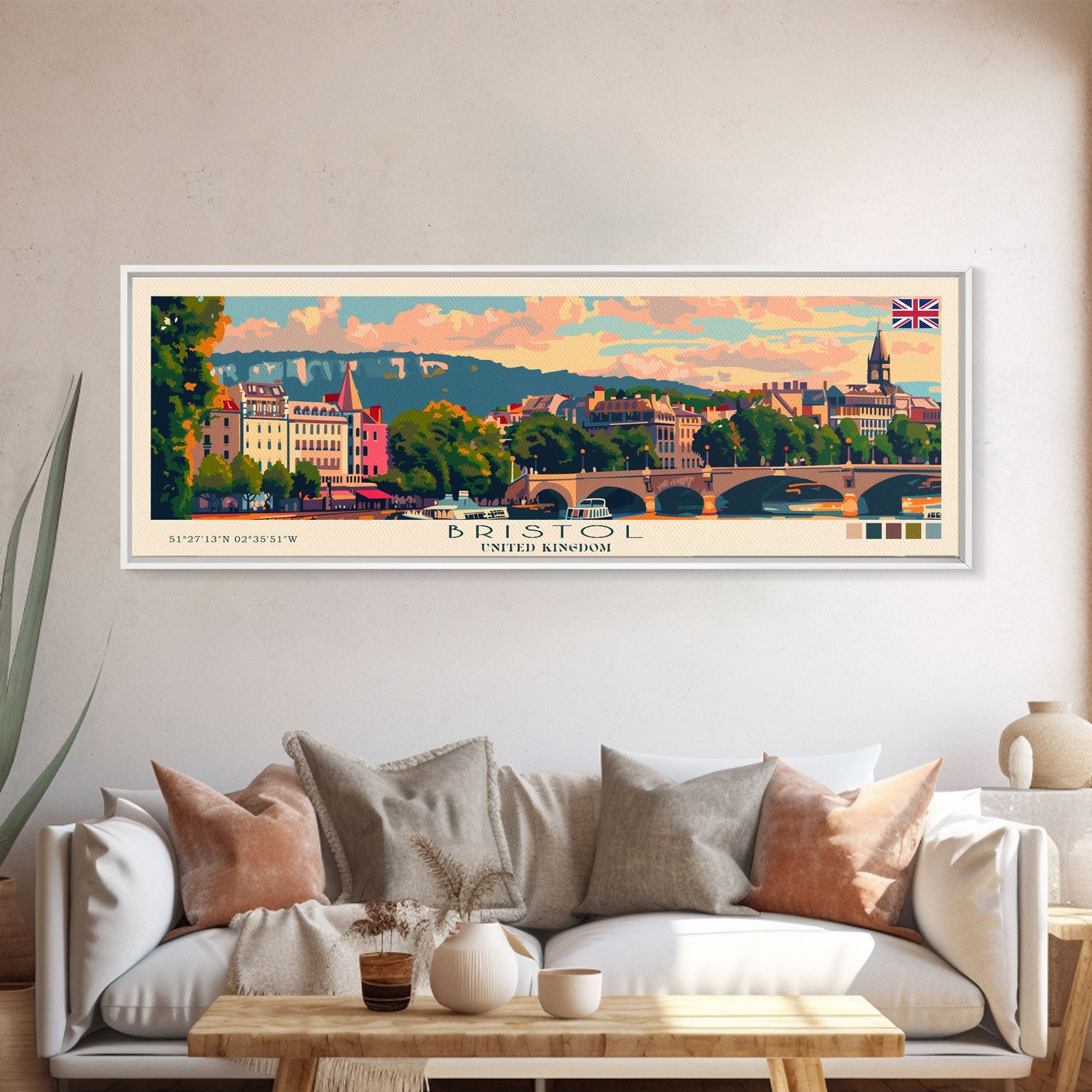 Bristol United Kingdom Panoramic Travel Poster, Framed Canvas Print or Metal Wall Art, Travel Art, Home Decor, Panoramic Painting, Midcentury Art