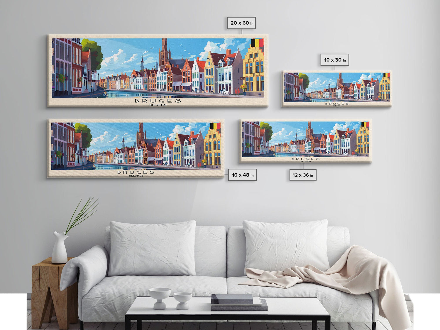 Bruges Belgium Travel Art, City Art, Framed Canvas Print or Metal Wall Art, Europe Travel Poster, Panoramic Wall Art, Extra Wide Wall Art - 10x30 Inches / No Frame - Stretched Canvas Only is backordered and will ship as soon as it is back in stock.