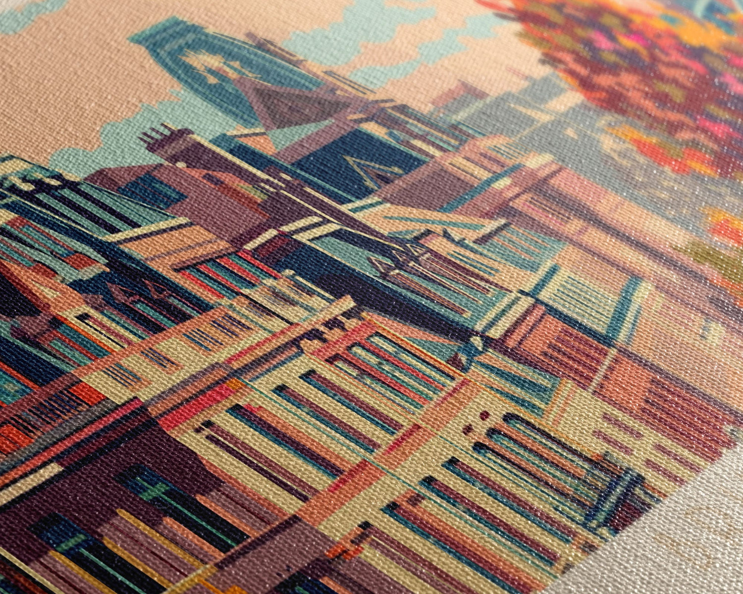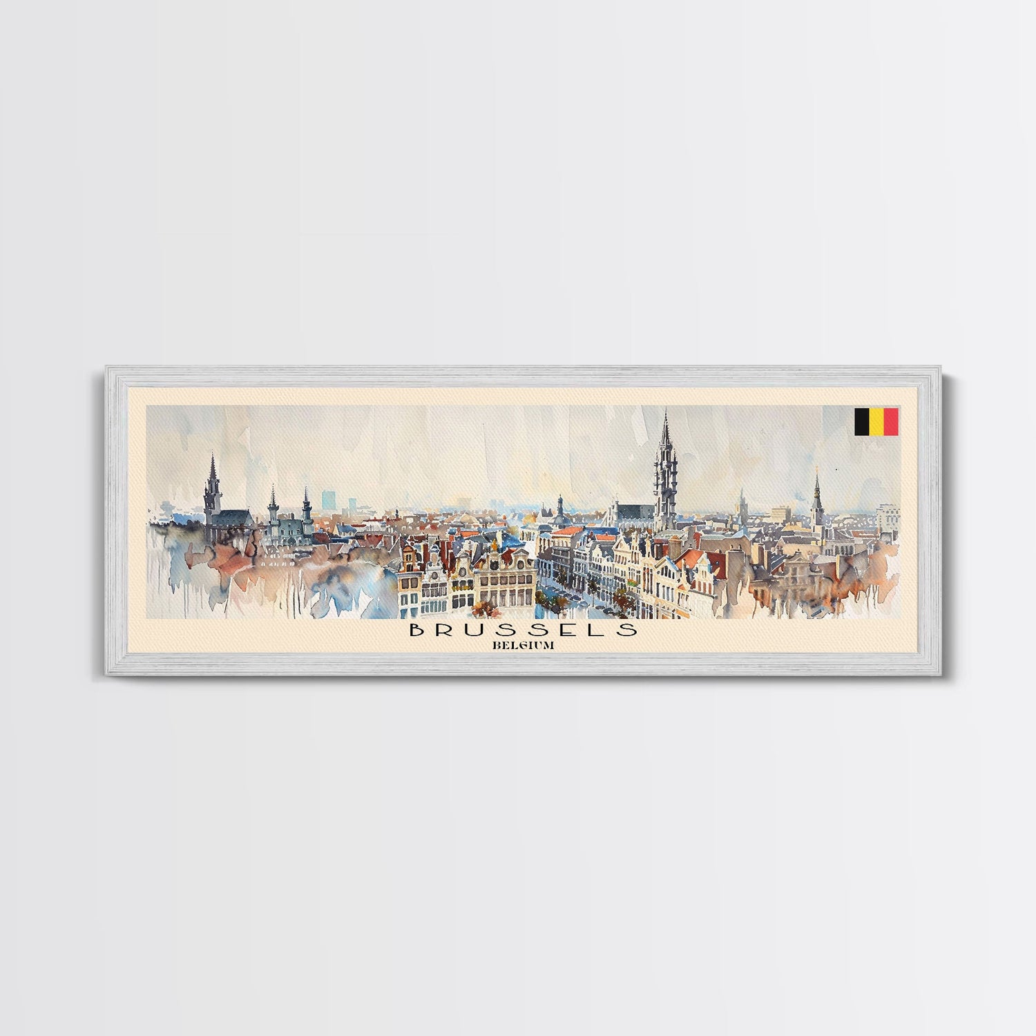 Brussels Belgium Panoramic Travel Poster, Framed Canvas Print or Metal Wall Art, Travel Art, Home Decor, Panoramic Painting, Midcentury Art - 10x30 Inches / Gallery Wrap Canvas - Ready To Hang is backordered and will ship as soon as it is back in stock.