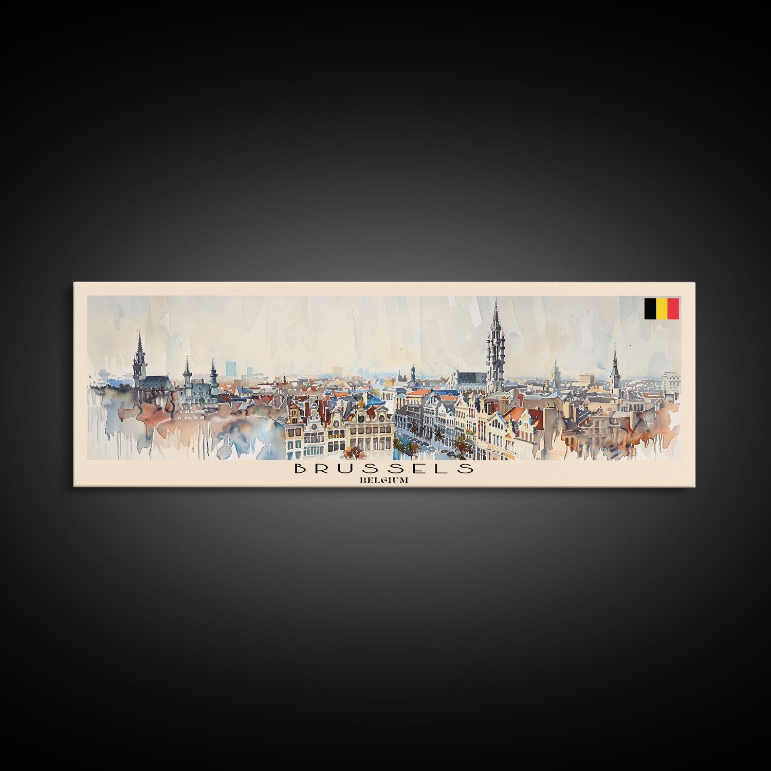 Brussels Belgium Panoramic Travel Poster, Framed Canvas Print or Metal Wall Art, Travel Art, Home Decor, Panoramic Painting, Midcentury Art