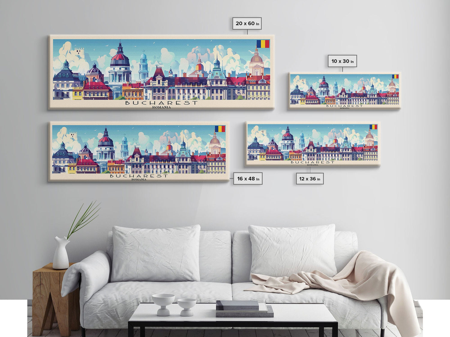 Bucharest Romania Wall Art, Panoramic Travel Poster, Panoramic Framed Canvas Print, City Wall Art, Wall Hanging Home Decor, Travel Art
