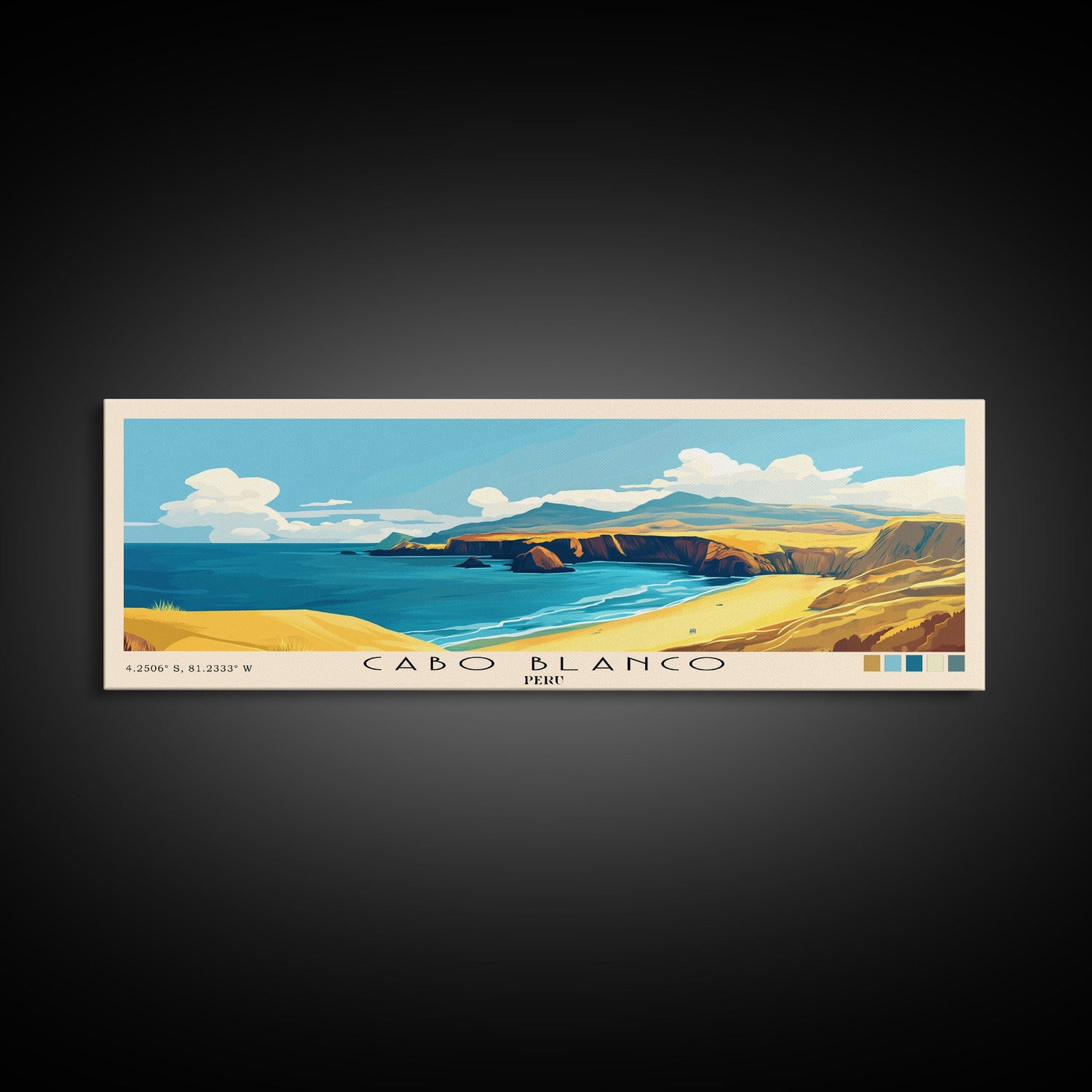 Cabo Blanco, Peru Panoramic Print, Vacation Gift, Peru Wall Art, Vacation Wall Art, Vacatation Memories, Beach Decor, Beach Or Lakehouse Art - 10x30 Inches / Gallery Wrap Canvas - Ready To Hang is backordered and will ship as soon as it is back in stock.