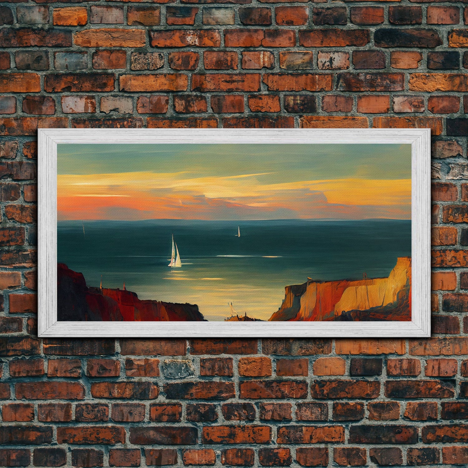 Canvas print of sail boats on the ocean, sailing at sunset, cool lakehouse art, living room wall art, sailboats, watercolor - 10x20 Inches / No Frame - Stretched Canvas Only is backordered and will ship as soon as it is back in stock.