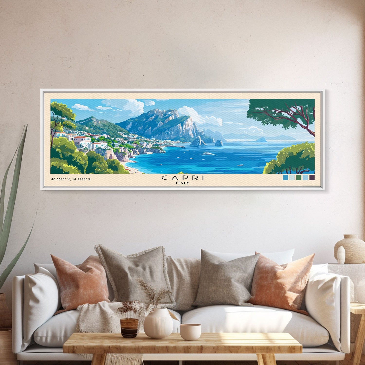 Capri, Italy Panoramic Print, Vacation Gift, Italy Wall Art, Vacation Wall Art, Vacatation Memories, Beach Decor, Beach Or Lakehouse Art - 10x30 Inches / Gallery Wrap Canvas - Ready To Hang is backordered and will ship as soon as it is back in stock.