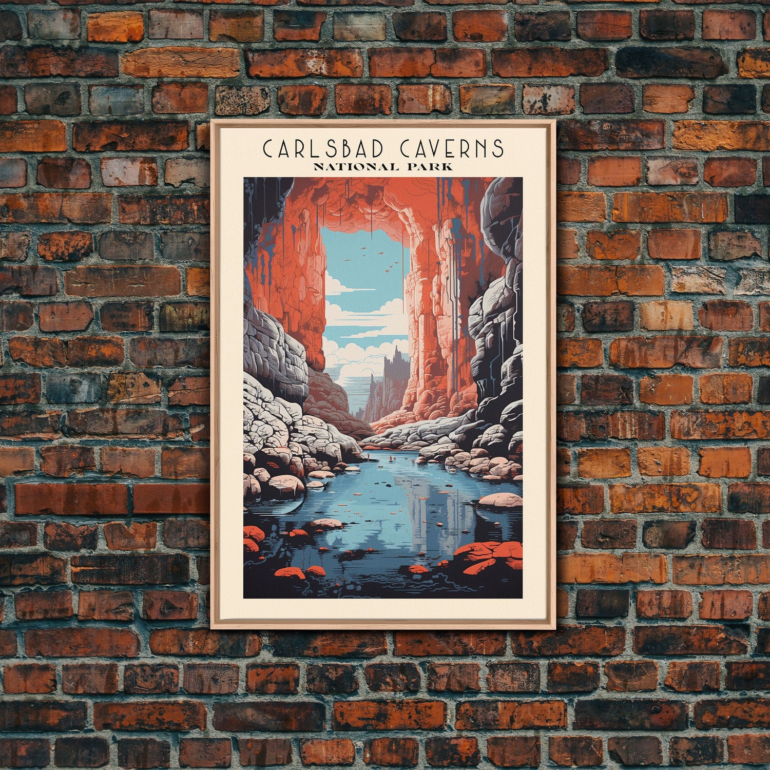 Carlsbad Caverns National Park Travel Poster Print, Canvas Print Wall Art, New Mexico Travel Art, Midcentury Modern Travel Decor