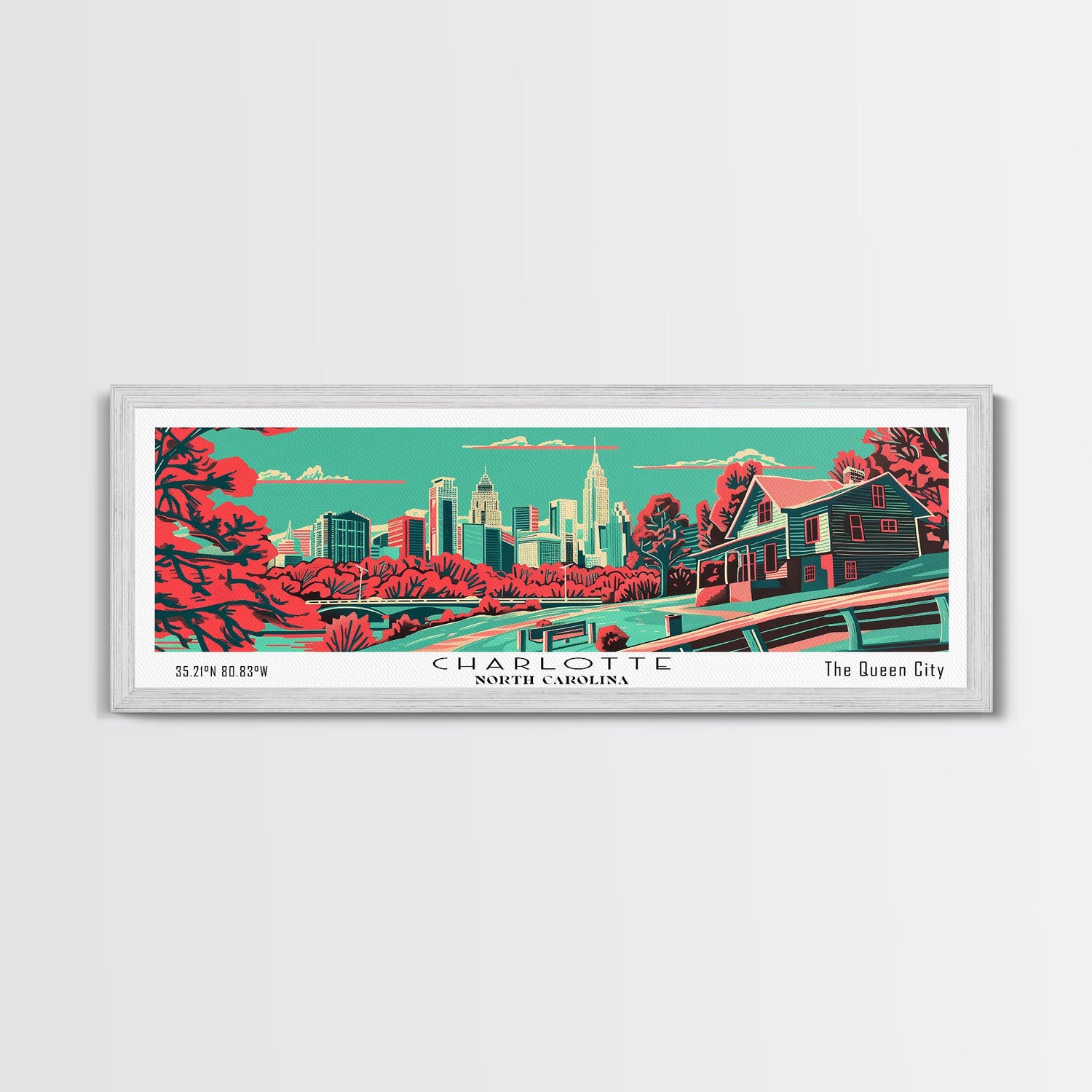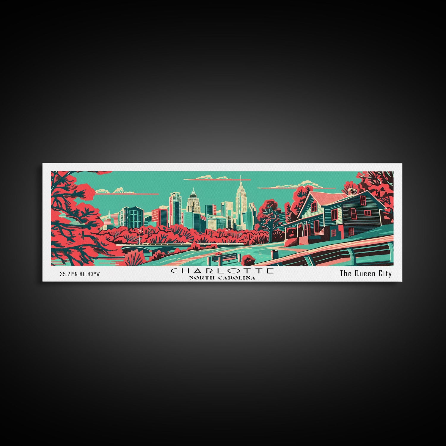 Charlotte North Carolina Panoramic Travel Poster Canvas Print - 10x30 Inches / No Frame - Stretched Canvas Only is backordered and will ship as soon as it is back in stock.