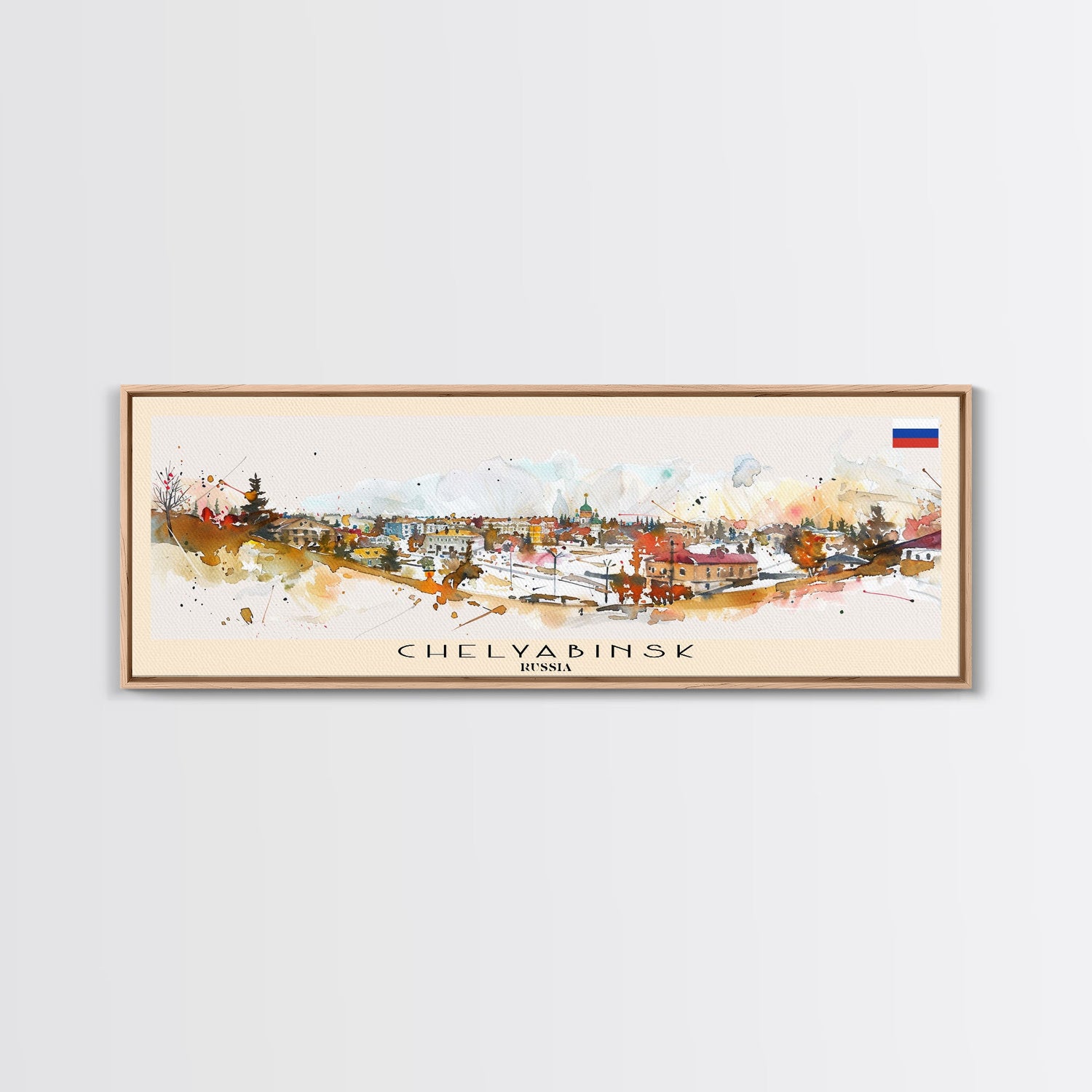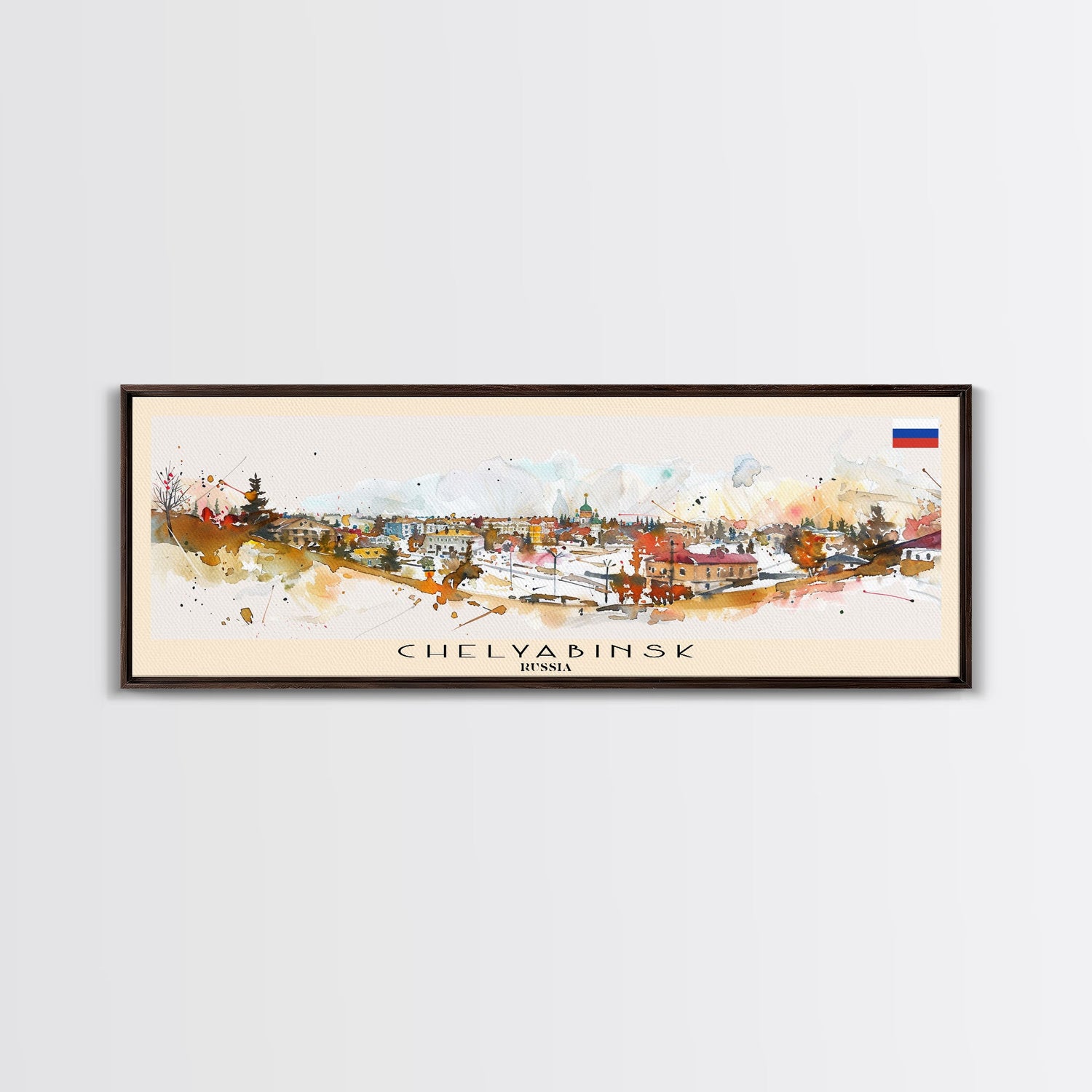Chelyabinsk Russia Panoramic Travel Poster, Framed Canvas Print or Metal Wall Art, Travel Art, Home Decor, Panoramic Painting, Midcentury Art - 10x30 Inches / Gallery Wrap Canvas - Ready To Hang is backordered and will ship as soon as it is back in stock.