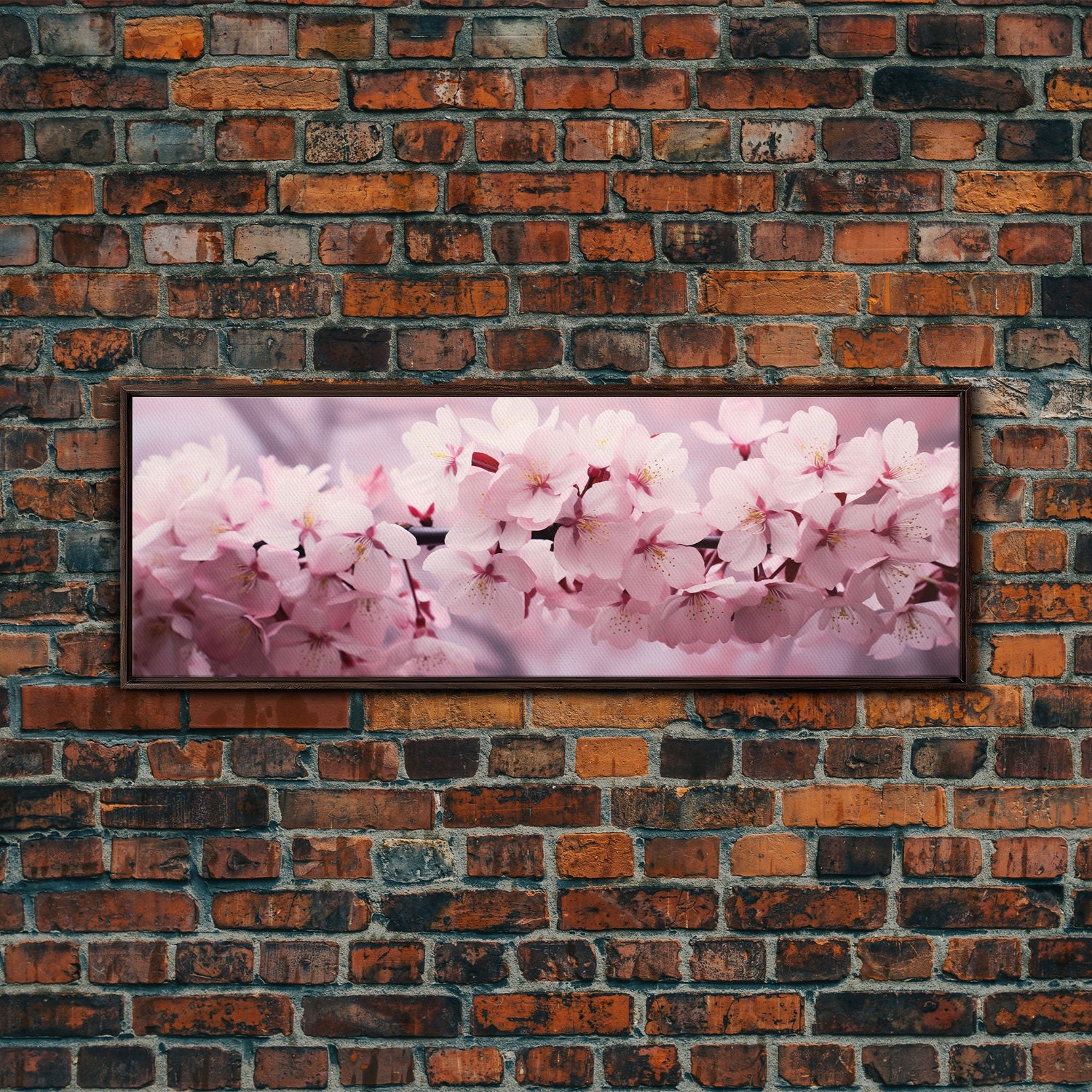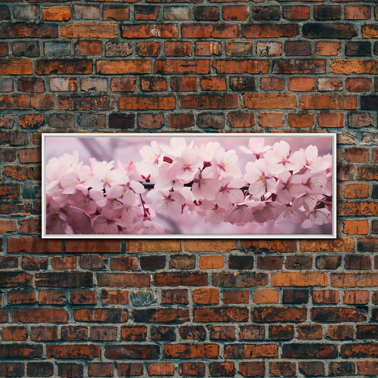 Cherry Blossoms In The Spring, Framed Canvas Print, Photography Print, Panoramic Wall Art, Above Sofa Decor