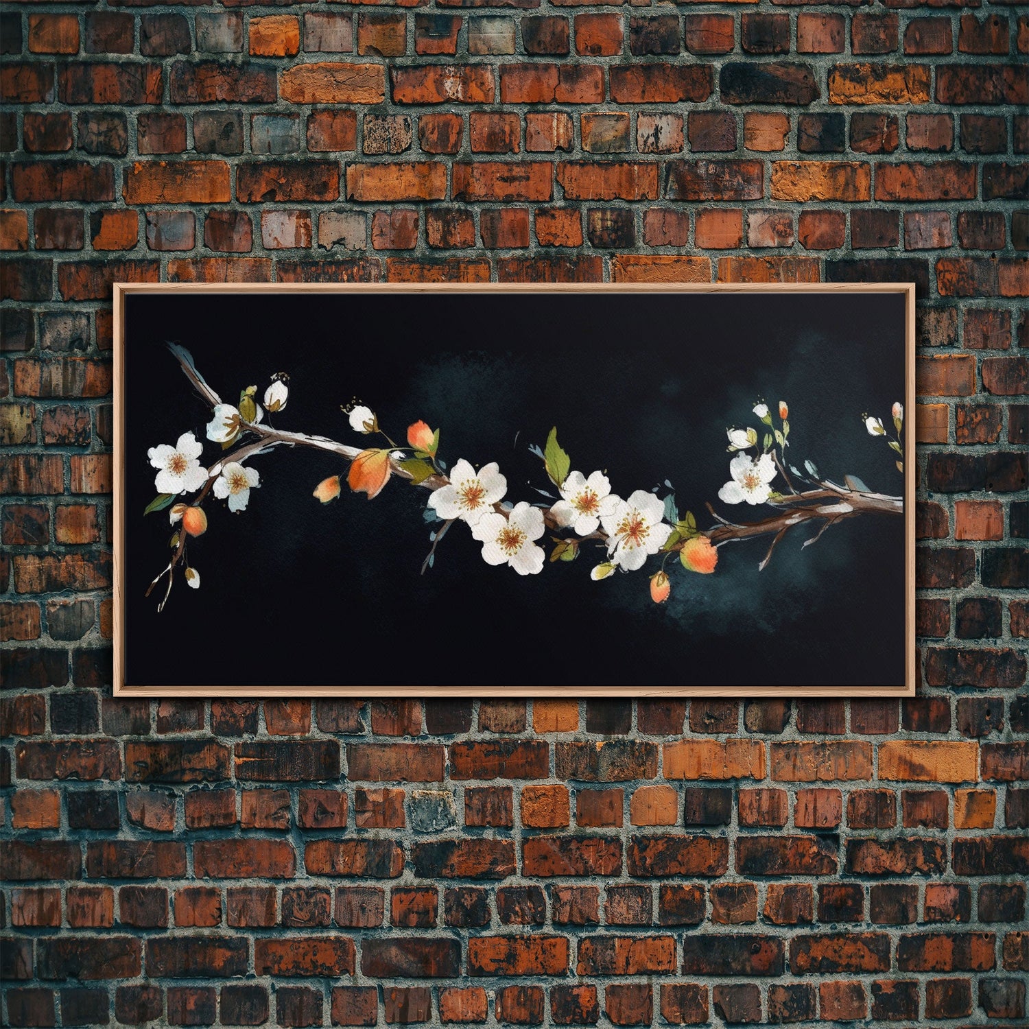 Cherry Blossoms Wall Decor, Floral Wall Art, White Flowers Wall Art, Panoramic Wall Decor, Canvas Print, Wall Art, Framed Canvas Art