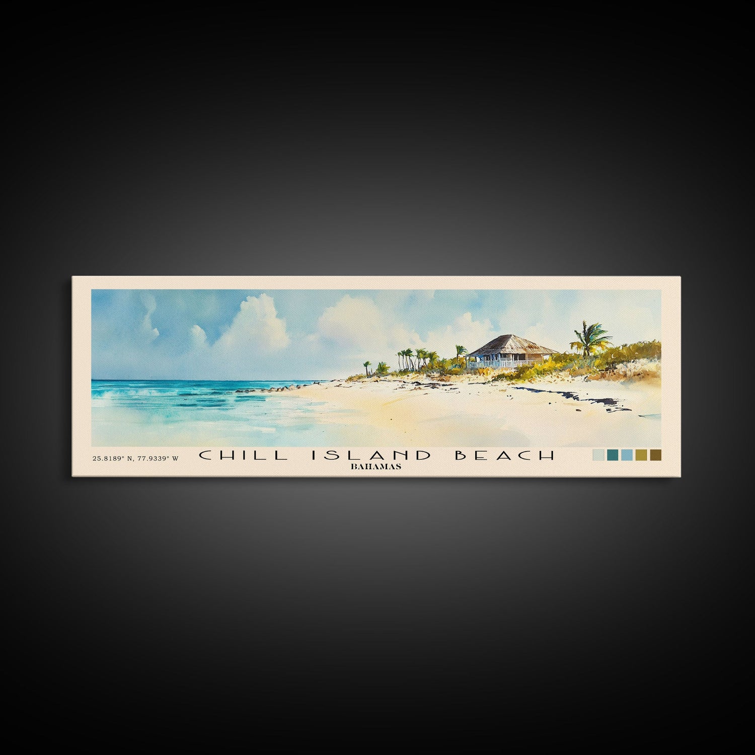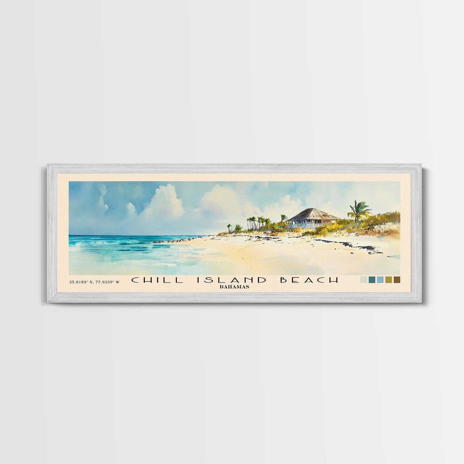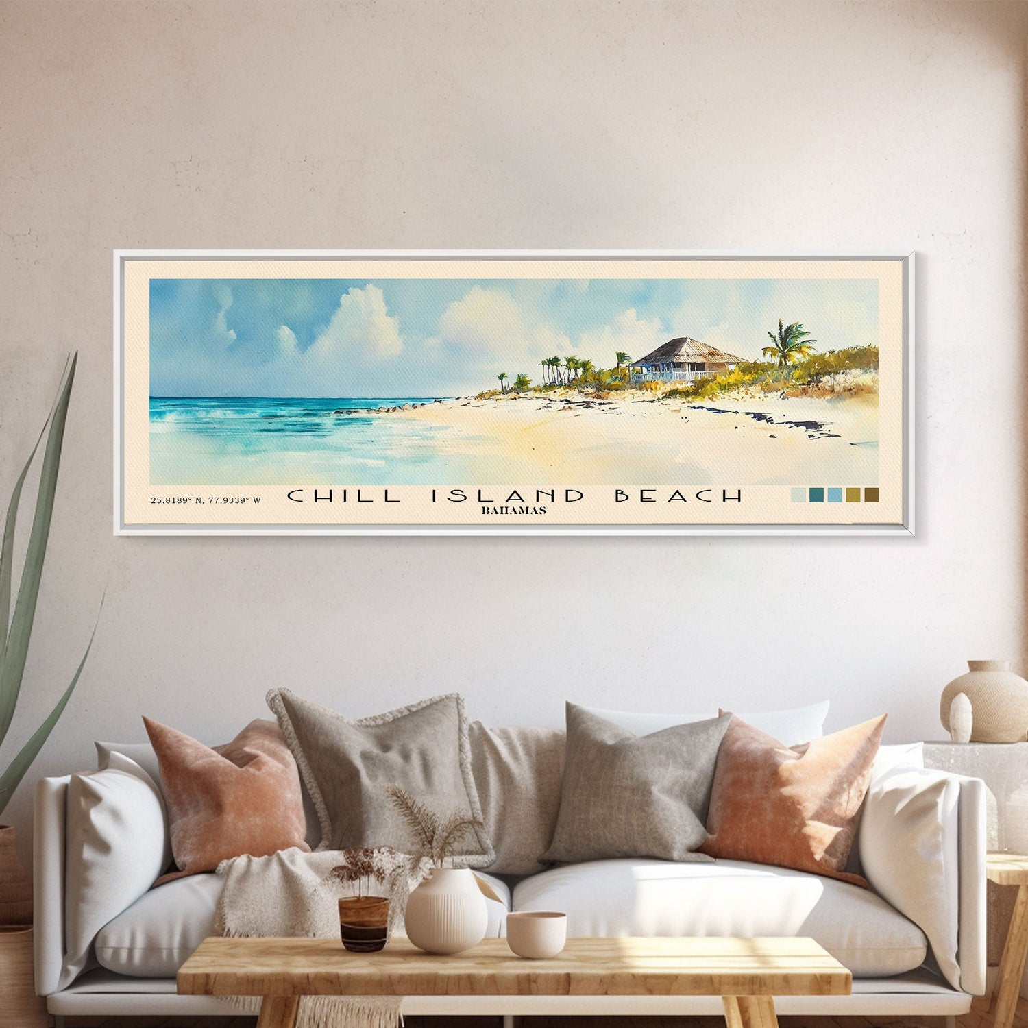 Chill Island Beach, Bahamas Watercolor Beach Print, Vacation Gift, Bahamas Wall Art, Framed Canvas Print, Framed Beach Painting - 10x30 Inches / No Frame - Stretched Canvas Only is backordered and will ship as soon as it is back in stock.