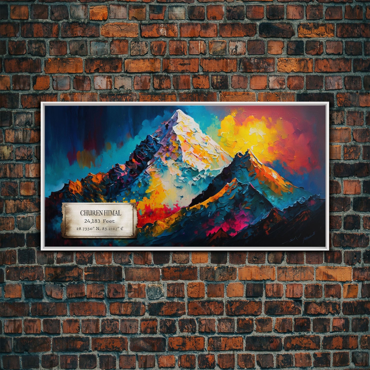 Churen Himal, Travel Poster Wall Art, Framed Canvas Print, Mountain Art, Mountain Landscape Painting - 10x20 Inches / No Frame - Stretched Canvas Only is backordered and will ship as soon as it is back in stock.