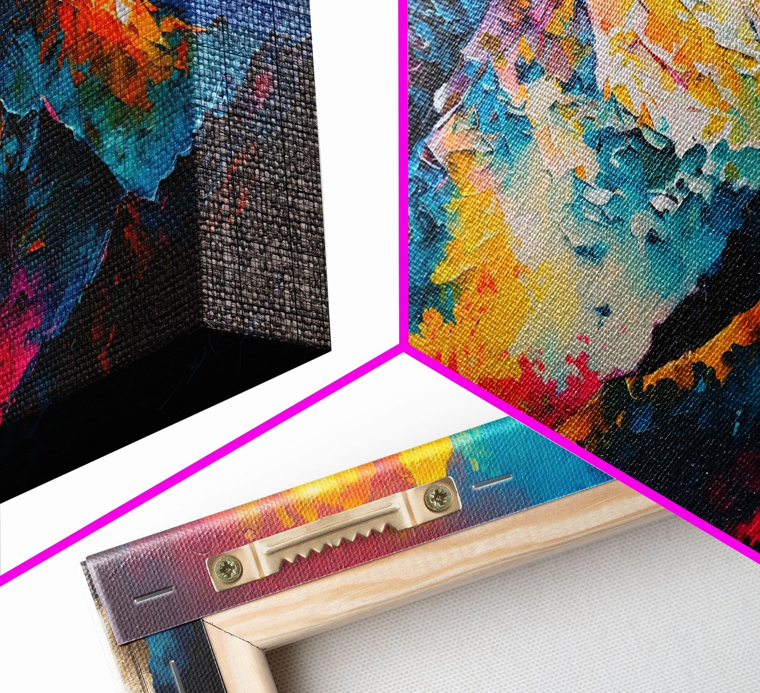 Hello and thank you for taking the time to view our modern high quality giclée artwork! Printed on extremely durable 350 GSM canvas material with ECO friendly archival grade ink, then hand stretched and stapled over premium, FSC certified and shrink resistant frames. Designed and built to last a lifetime.