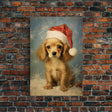 Cocker Spaniel Puppy In A Santa Hat, Framed Canvas Print, Christmas Decor, Holiday Decor, Seasonal Wall Decor, Farmhouse Christmas