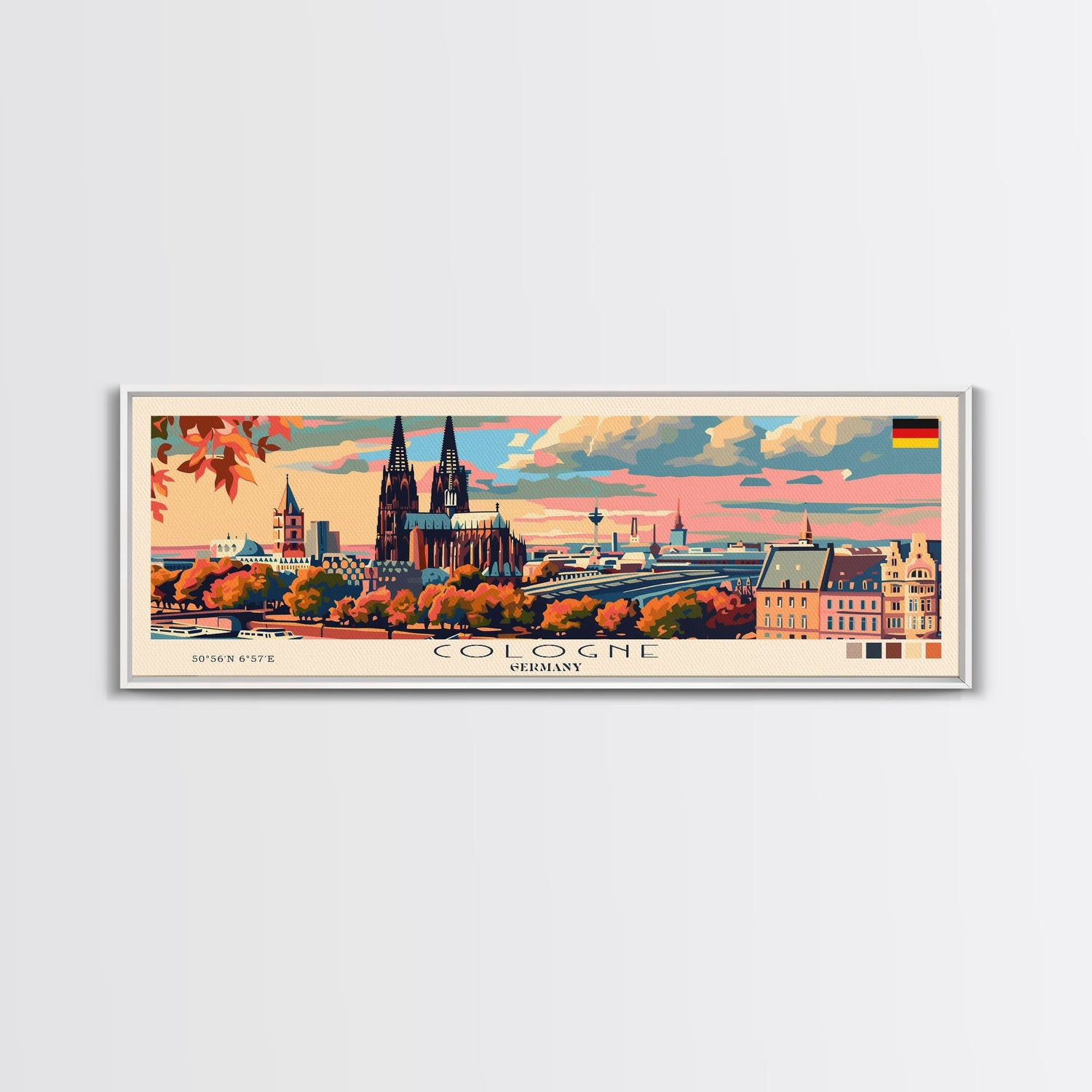 Cologne Germany Panoramic Travel Poster, Framed Canvas Print or Metal Wall Art, Travel Art, Home Decor, Panoramic Painting, Midcentury Art - 10x30 Inches / Gallery Wrap Canvas - Ready To Hang is backordered and will ship as soon as it is back in stock.