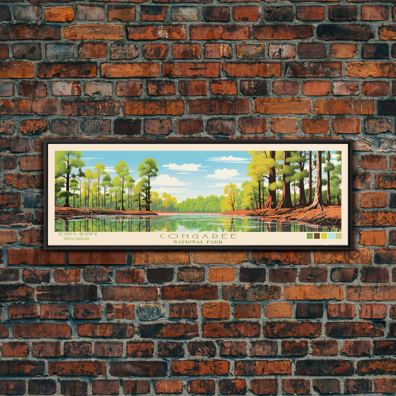 Congaree National Park, Panoramic South Carolina Travel Art, National Park Print, Minimalist Travel Art, Midcentury Modern Style Landscape