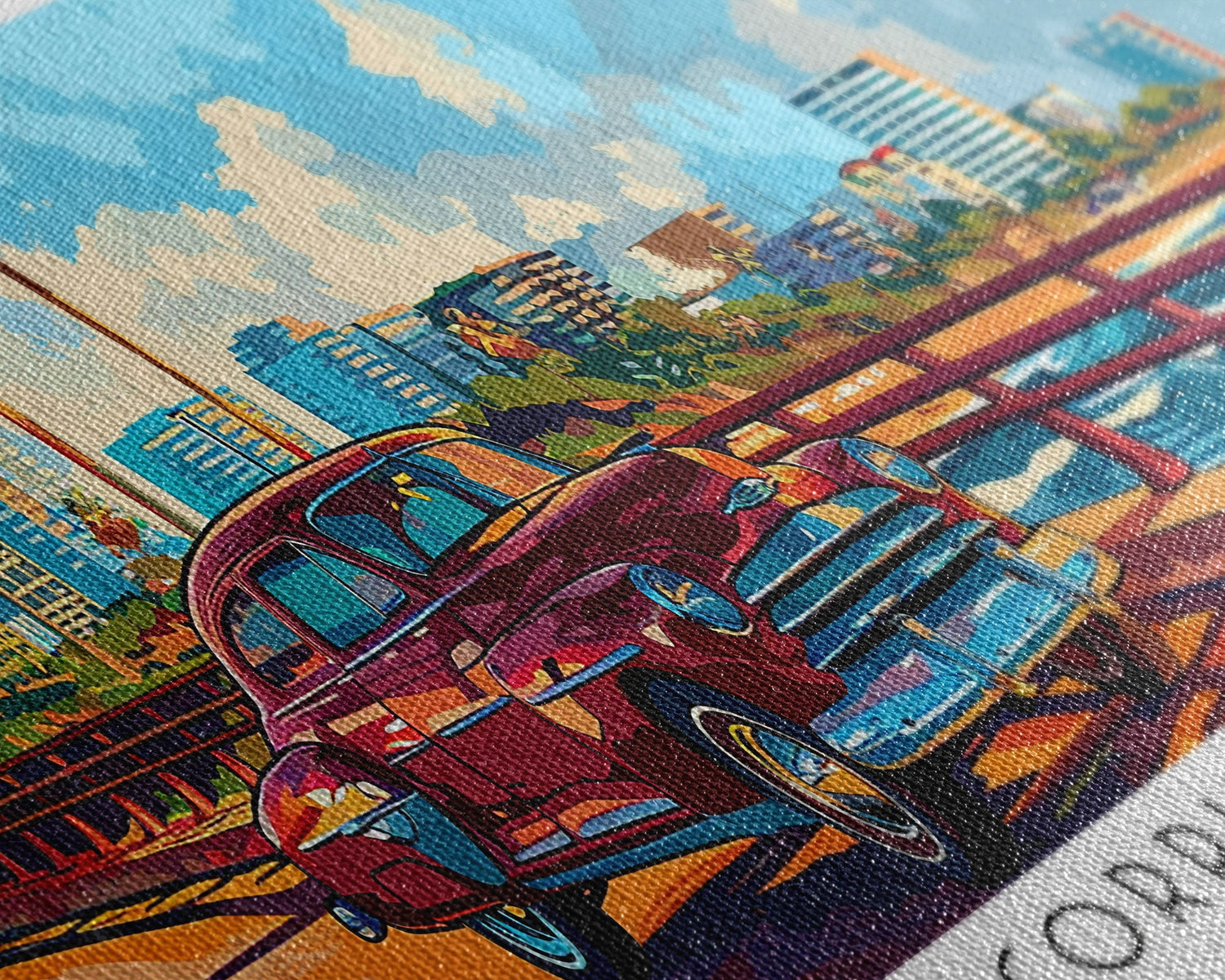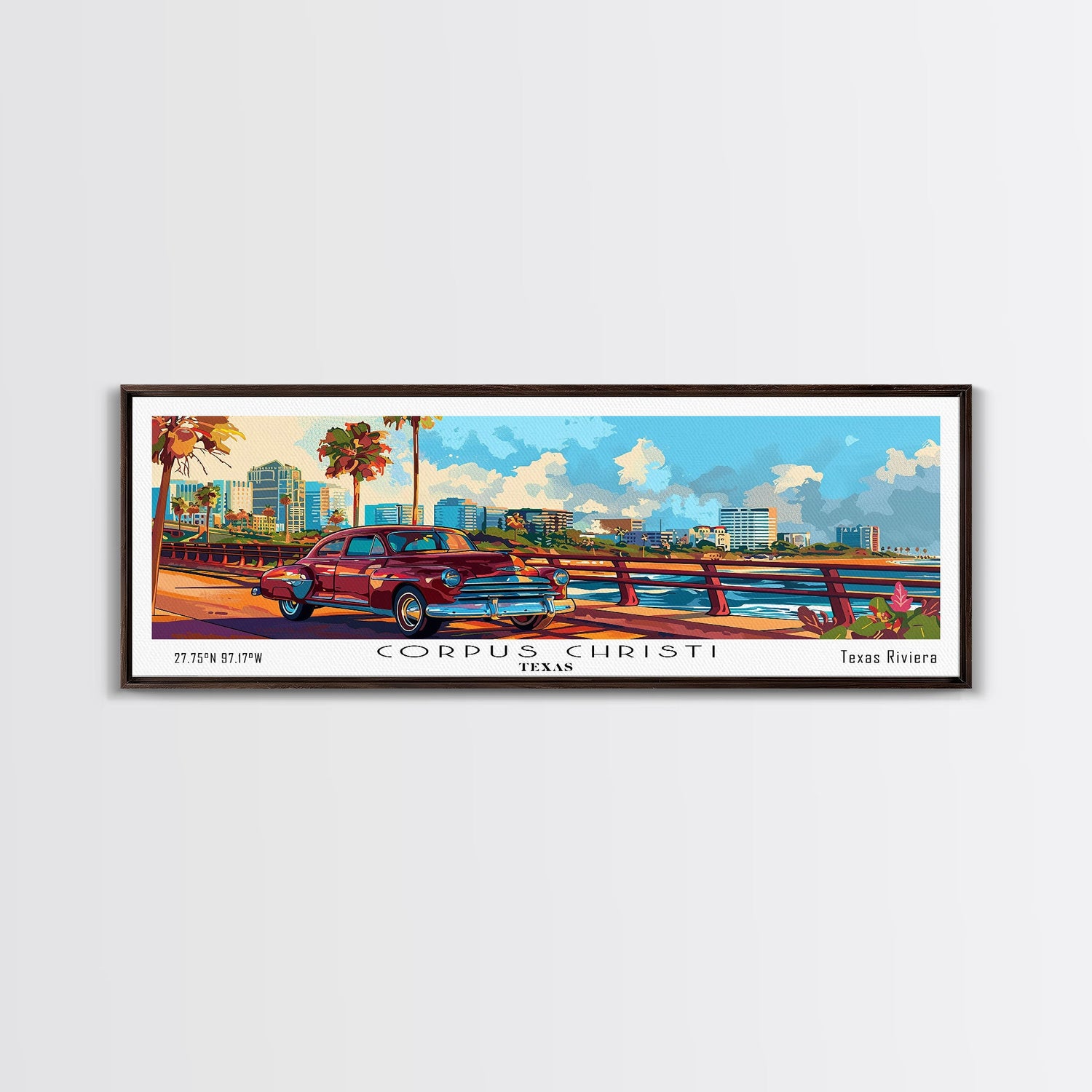 Corpus Christi Texas Panoramic Painting Framed Canvas Print, Mid Century Modern Art, Pop Art Style, Travel Poster, Living Room Decor
