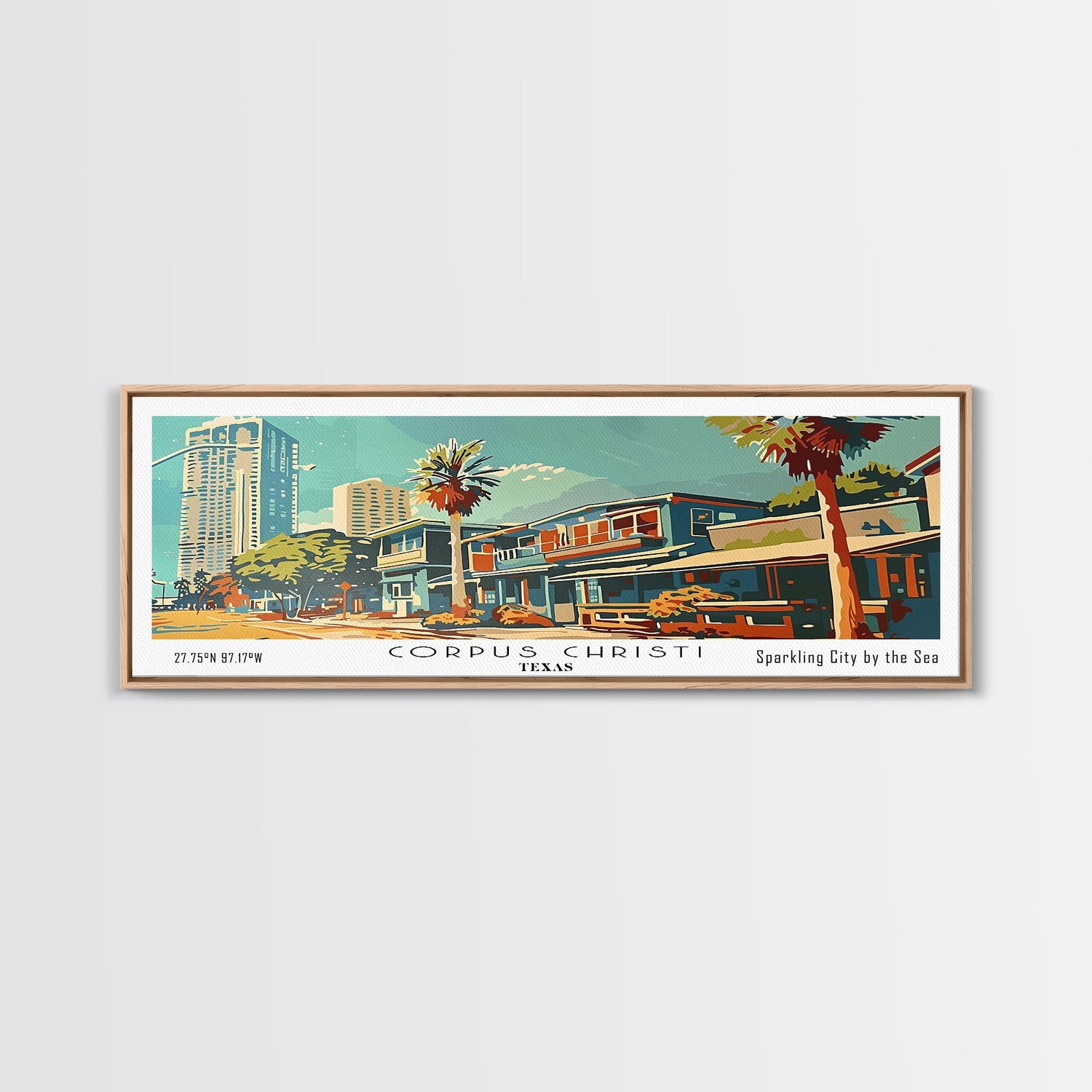 Corpus Christi Texas Panoramic Painting, Mid Century Modern Framed Canvas Print, Retro Pop Art Travel Poster, Wall Decor, Home Decor, Wall Hanging
