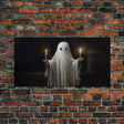 Cute Ghost Holding Candles, Framed Canvas Print, Dark Academia Wall Art, Victorian Oil Painting Style Halloween Wall Art, Ghost Print - 10x20 Inches / No Frame - Stretched Canvas Only is backordered and will ship as soon as it is back in stock.