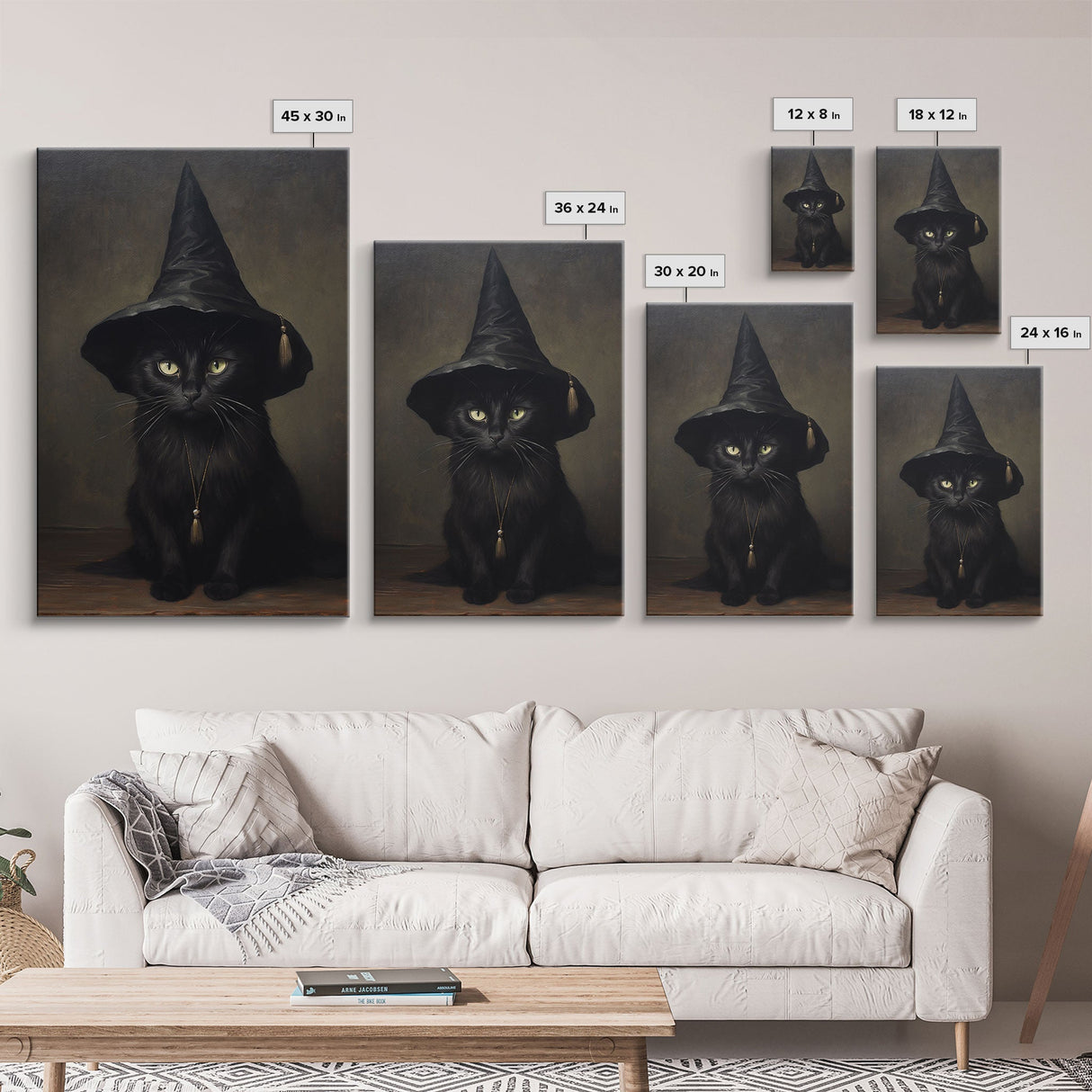 Cute Witch's Familiar Cat Halloween Art, Cat Witch, Cat Painting, Cute Cat Print, Halloween Decor, Black Cat Print, Framed Canvas / Canvas