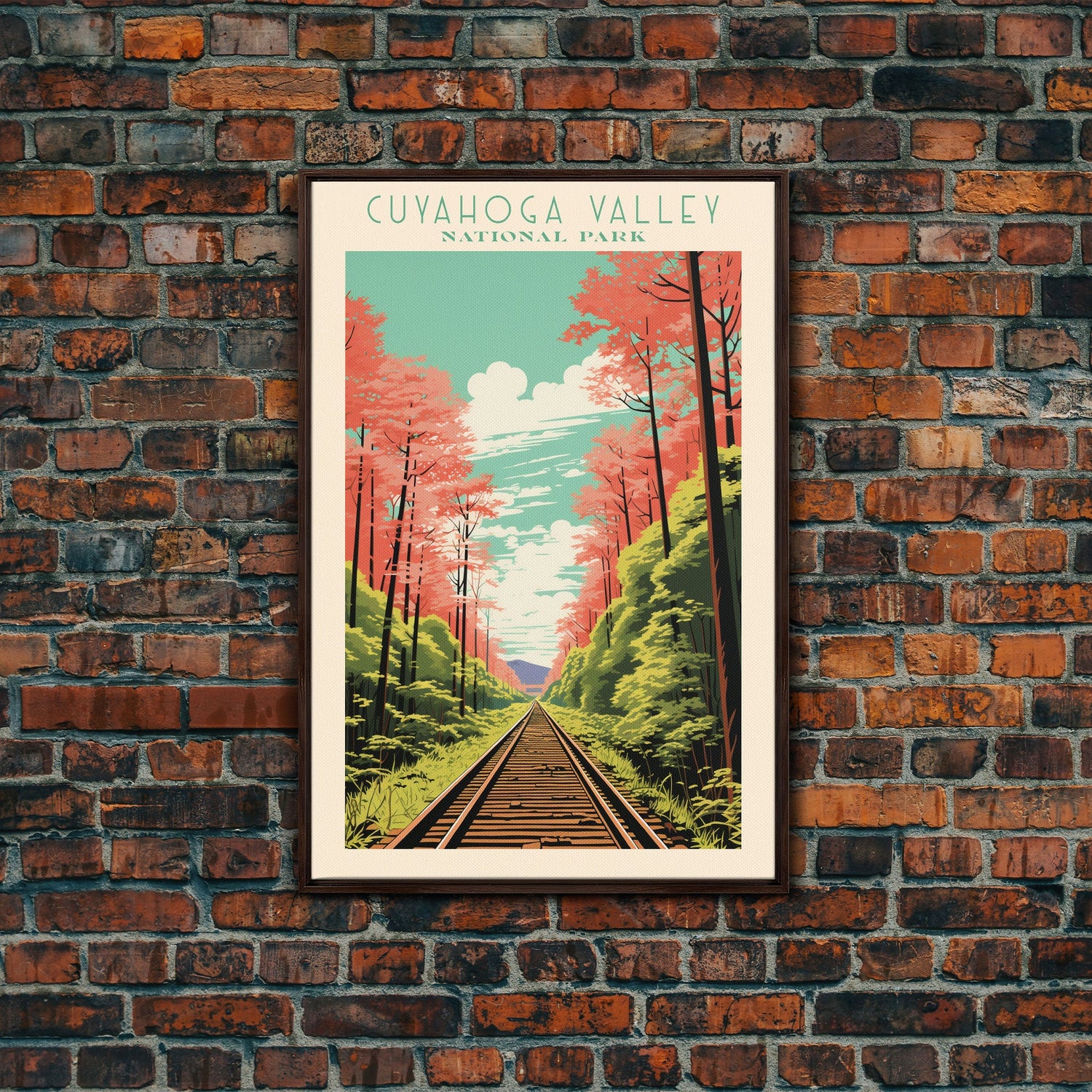 Cuyahoga Valley National Park Travel Poster Print, Canvas Print Wall Art, Ohio Travel Art, Midcentury Modern Travel Decor - 8x12 Inches / No Frame - Stretched Canvas Only is backordered and will ship as soon as it is back in stock.