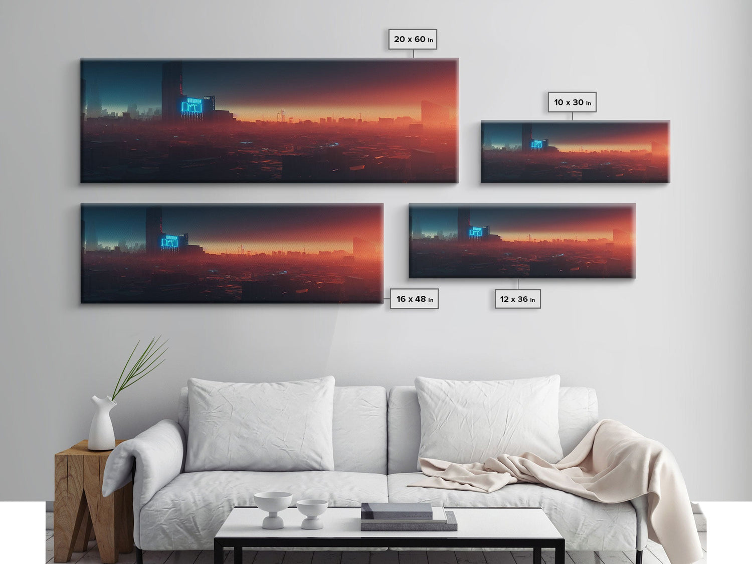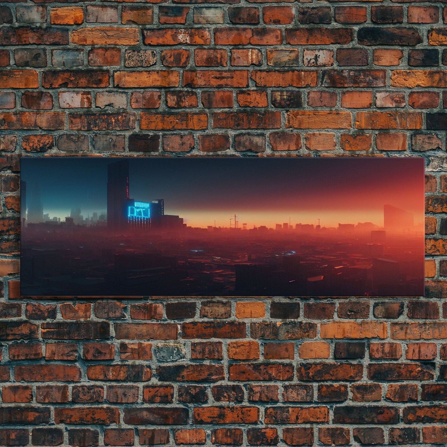 Cyberpunk Cityscape, Ready To Hang Canvas Print, Panoramic, Cyberpunk Concept Art, Cityscape at Sunset, Cool mancave art, gift for him
