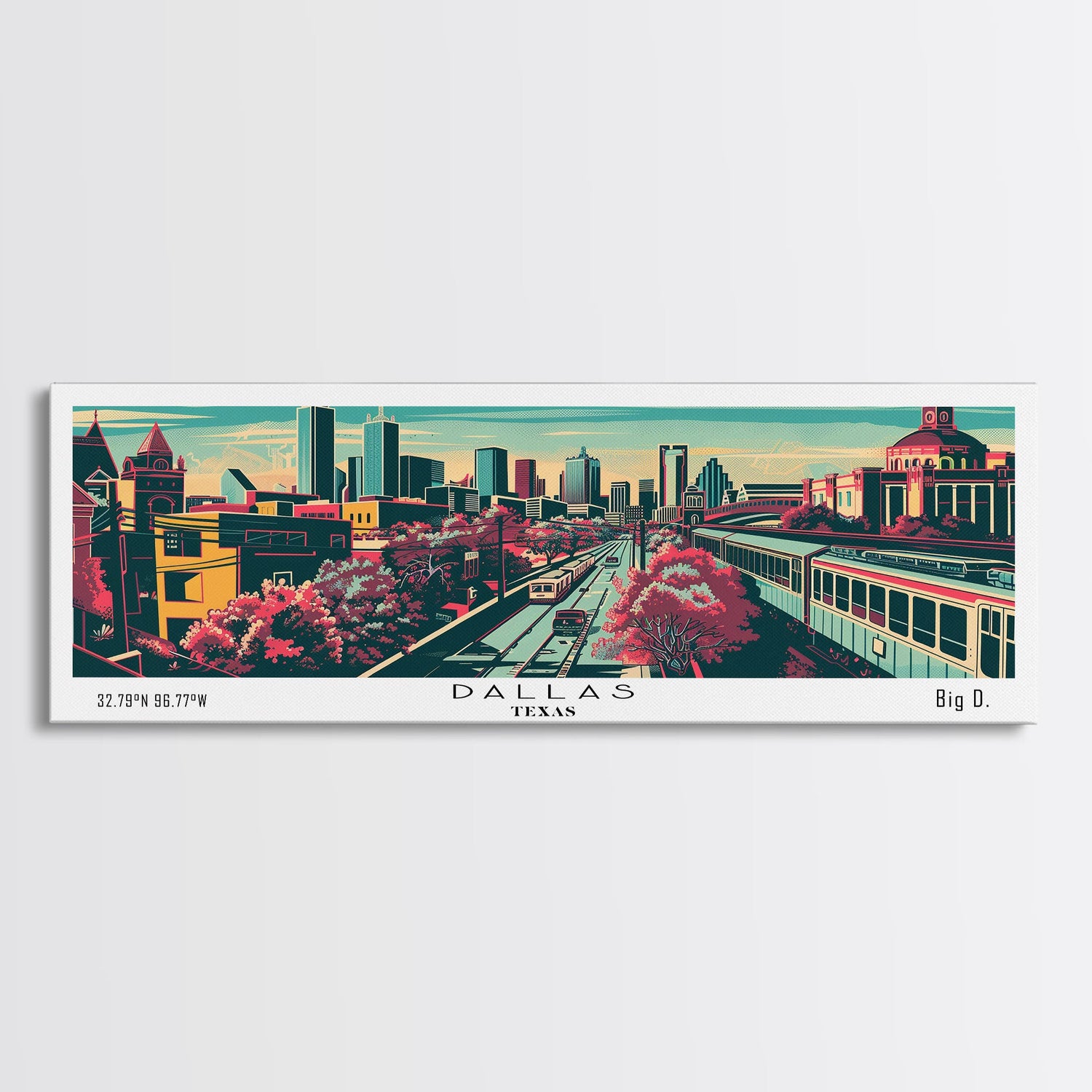 Dallas Texas Panoramic Travel Poster Canvas Print - 10x30 Inches / No Frame - Stretched Canvas Only is backordered and will ship as soon as it is back in stock.