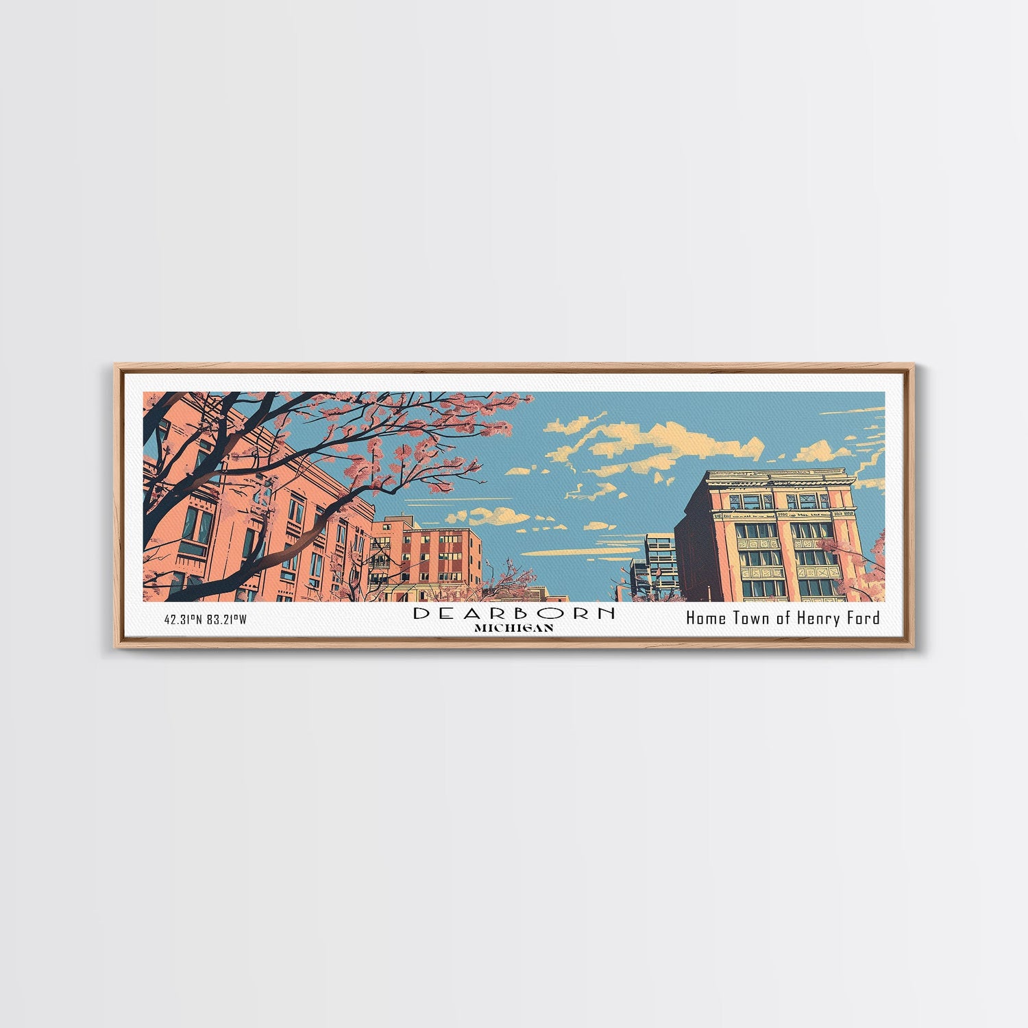 Dearborn Michigan Panoramic Painting, Mid Century Modern Framed Canvas Print, Retro Pop Art Travel Poster, City Wall Decor, Office Wall Art