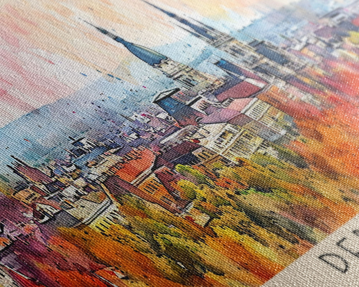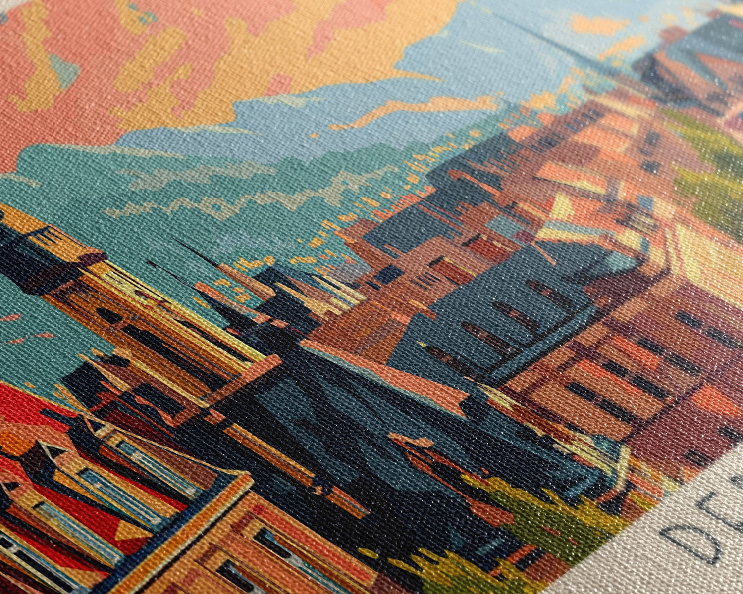 Debrecen Hungary Panoramic Travel Poster, Framed Canvas Print or Metal Wall Art, Travel Art, Home Decor, Panoramic Painting, Midcentury Art - 10x30 Inches / Gallery Wrap Canvas - Ready To Hang is backordered and will ship as soon as it is back in stock.