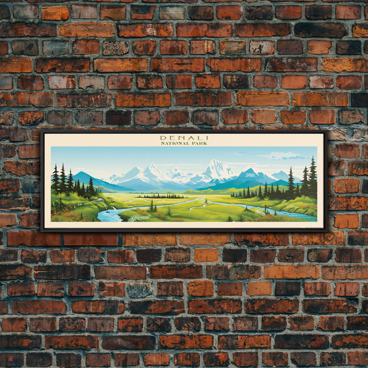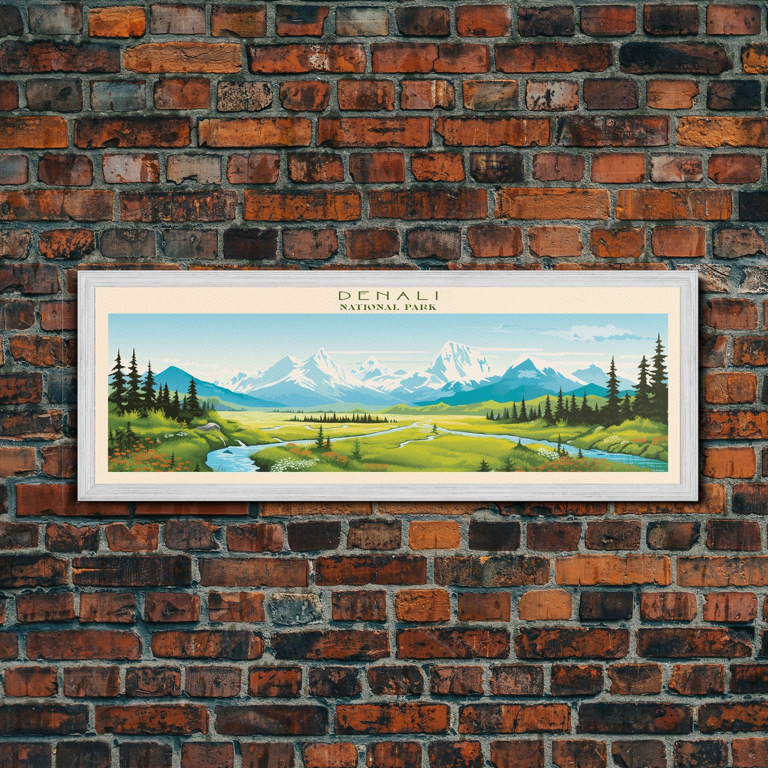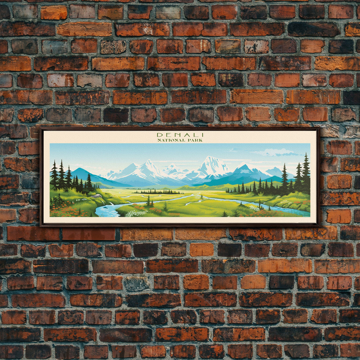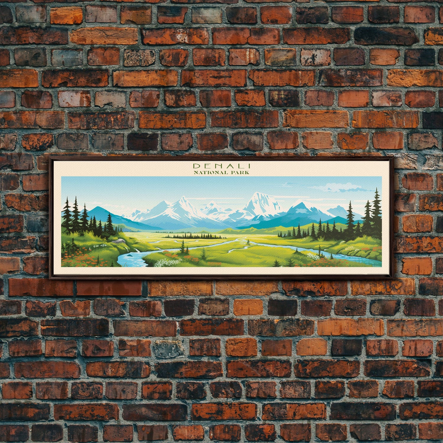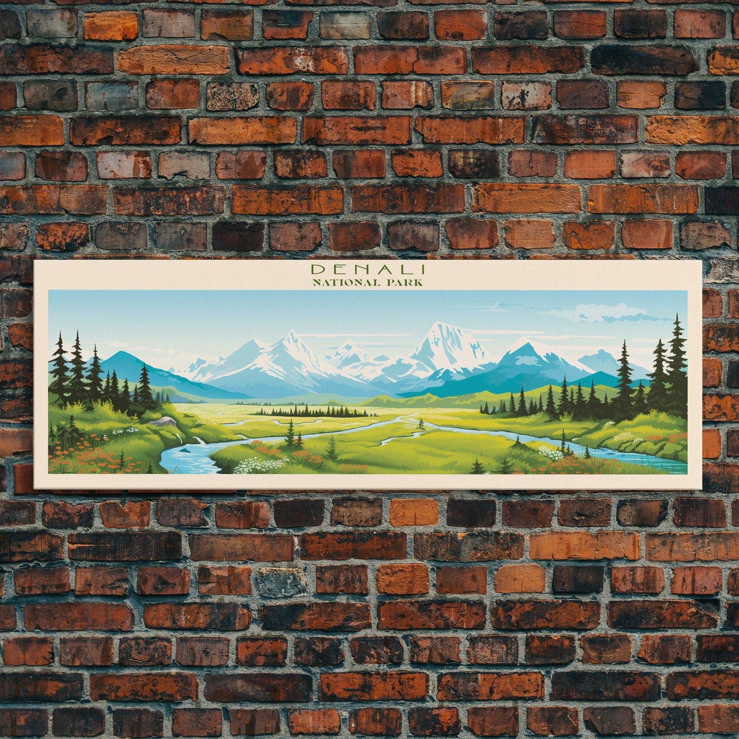 Denali National Park, Panoramic Alaska Travel Art, National Park Print, Minimalist Travel Art, Midcentury Modern Style Landscape - 10x30 Inches / No Frame - Stretched Canvas Only is backordered and will ship as soon as it is back in stock.