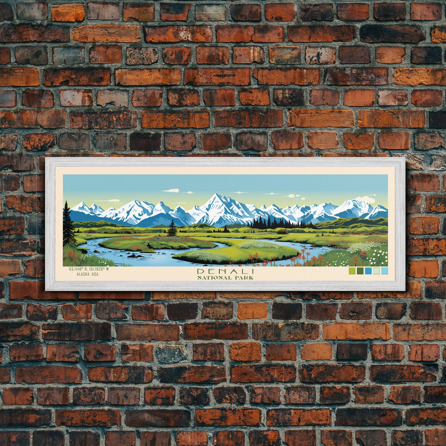 Denali National Park, Panoramic Alaska Travel Art, National Park Print, Minimalist Travel Art, Midcentury Modern Style Landscape - 10x30 Inches / No Frame - Stretched Canvas Only is backordered and will ship as soon as it is back in stock.