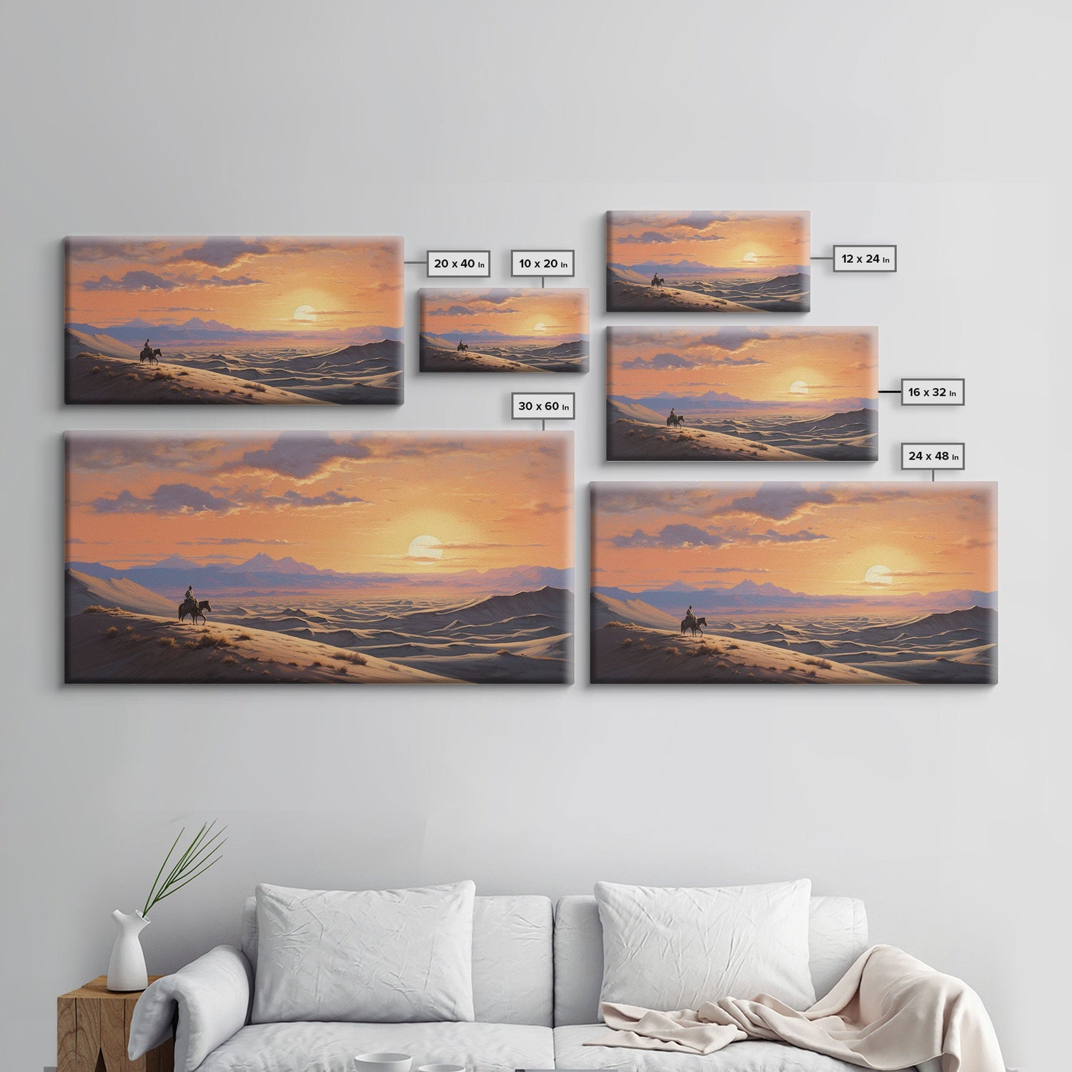 Desert Wall Art, Sunset Wall Print, Cowboy, Horse Art, Panoramic Art, Wall Art, Canvas Art, Landscape Art, Western Wall Decor, Gift For Men - 10x20 Inches / No Frame - Stretched Canvas Only is backordered and will ship as soon as it is back in stock.