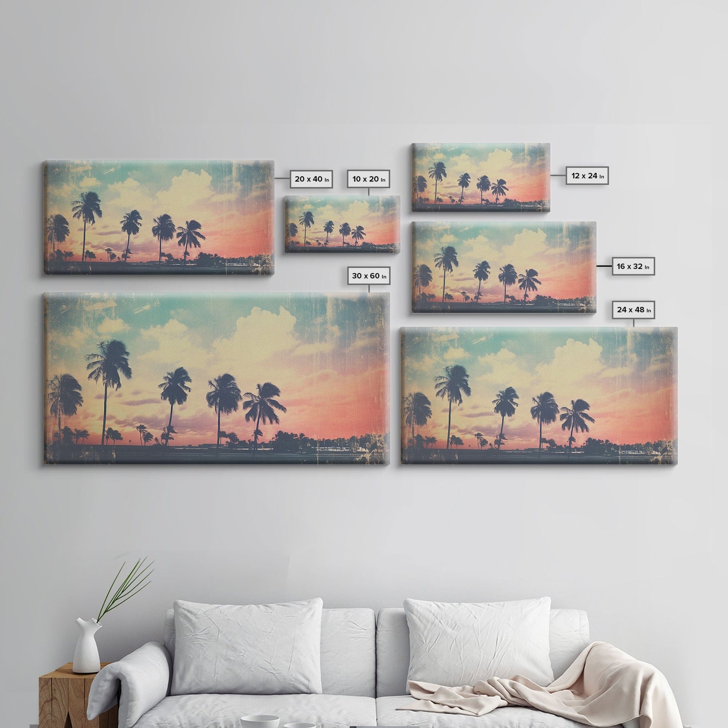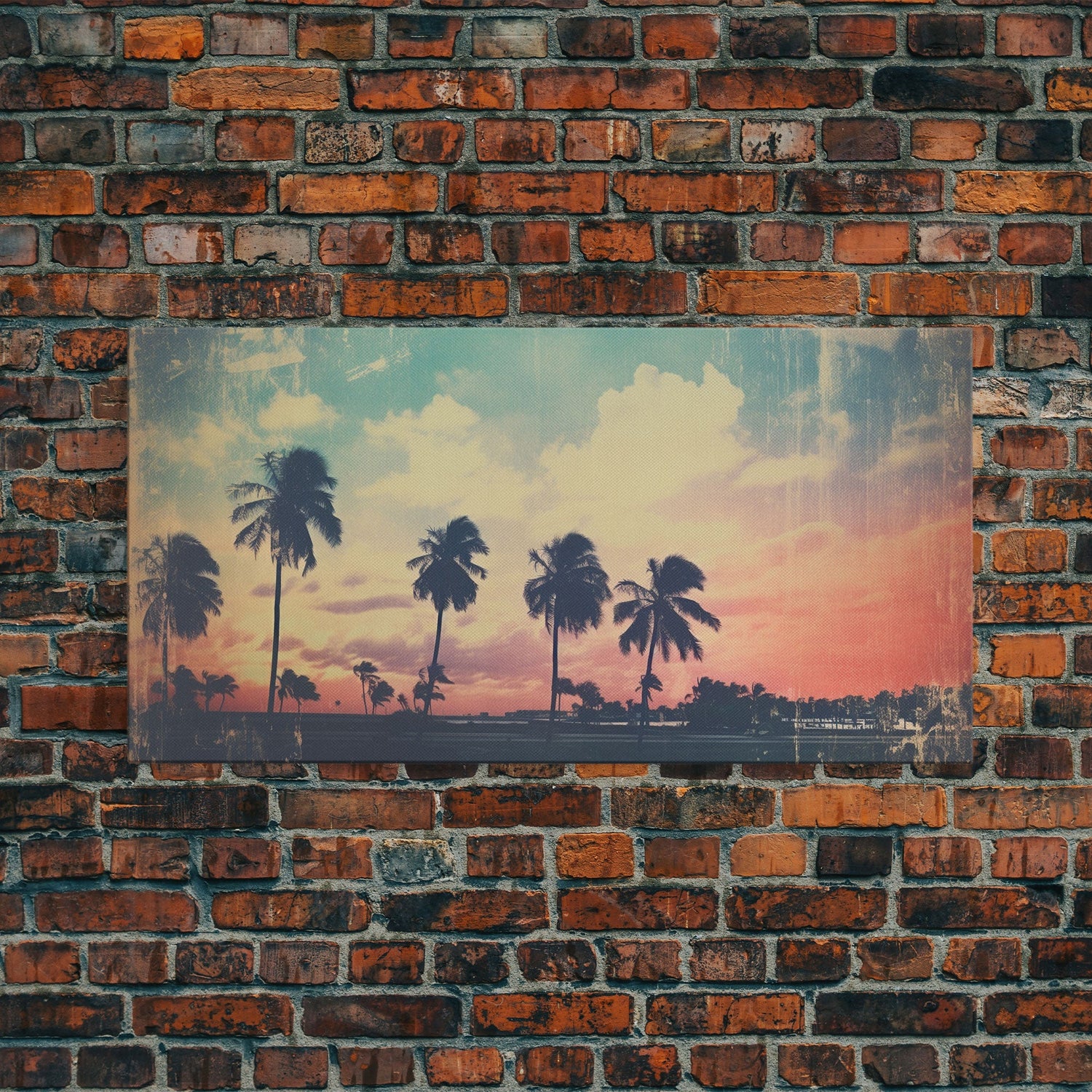 Distressed Old Photo Of Miami Beaches In the 1980s - Framed Canvas Print - Photography Print - Vaporwave Aesthetic Wall Art - 10x20 Inches / No Frame - Stretched Canvas Only is backordered and will ship as soon as it is back in stock.